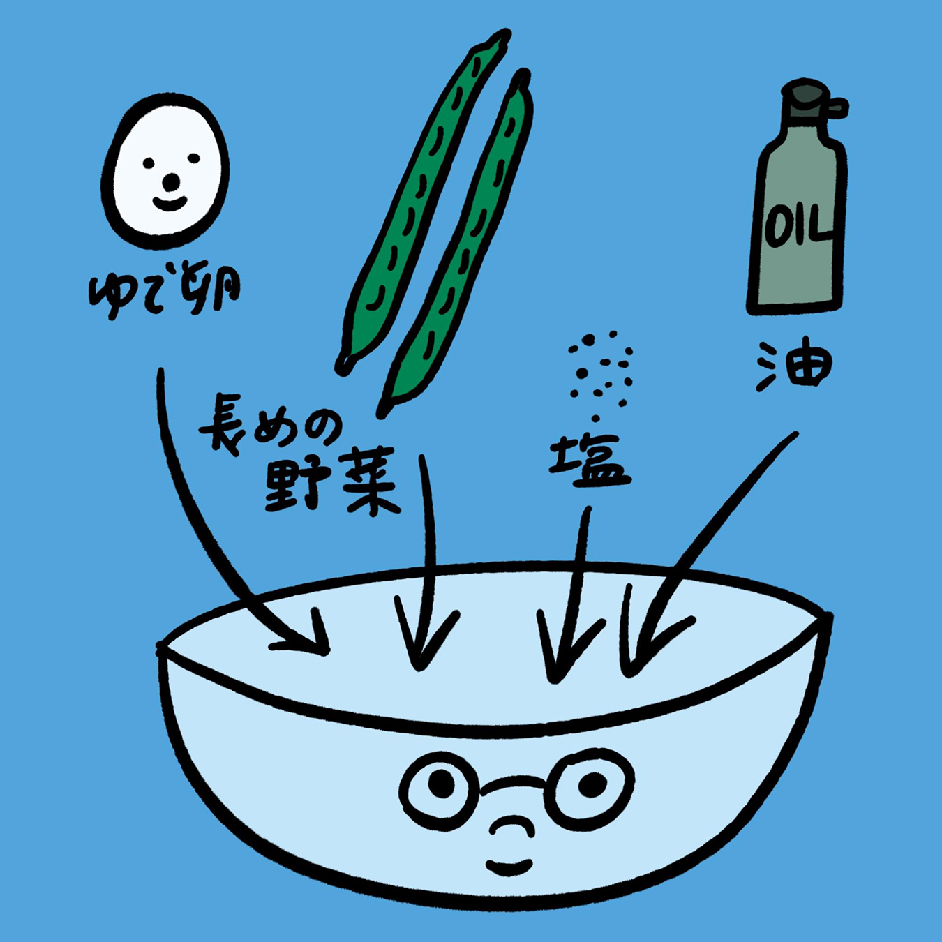 ・◯食感のいい長めの野菜(いんげん、四角豆、きゅうりの細切り)4~8本(素材の太さによって調整)