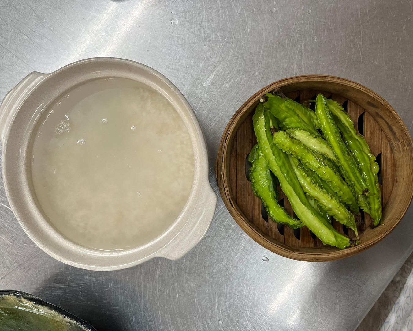 米と野菜を蒸す。お米を蒸すなんて初めてだ!