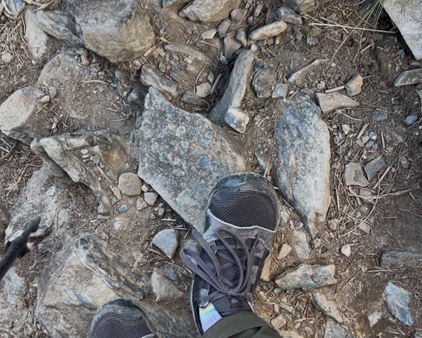 私のように裸足感覚の登山靴を履いている場合は、道中の少し突き出た石を利用して足裏をほぐしながら、軽やかに下山することもできます。