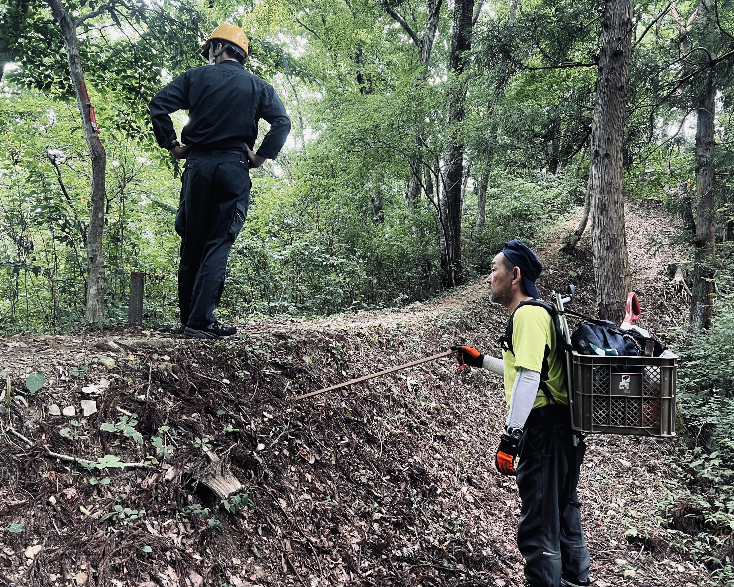 「お、ハイカーさんか! あそこの区間は歩きやすかったやろ〜。先週整備したばっかりや!」