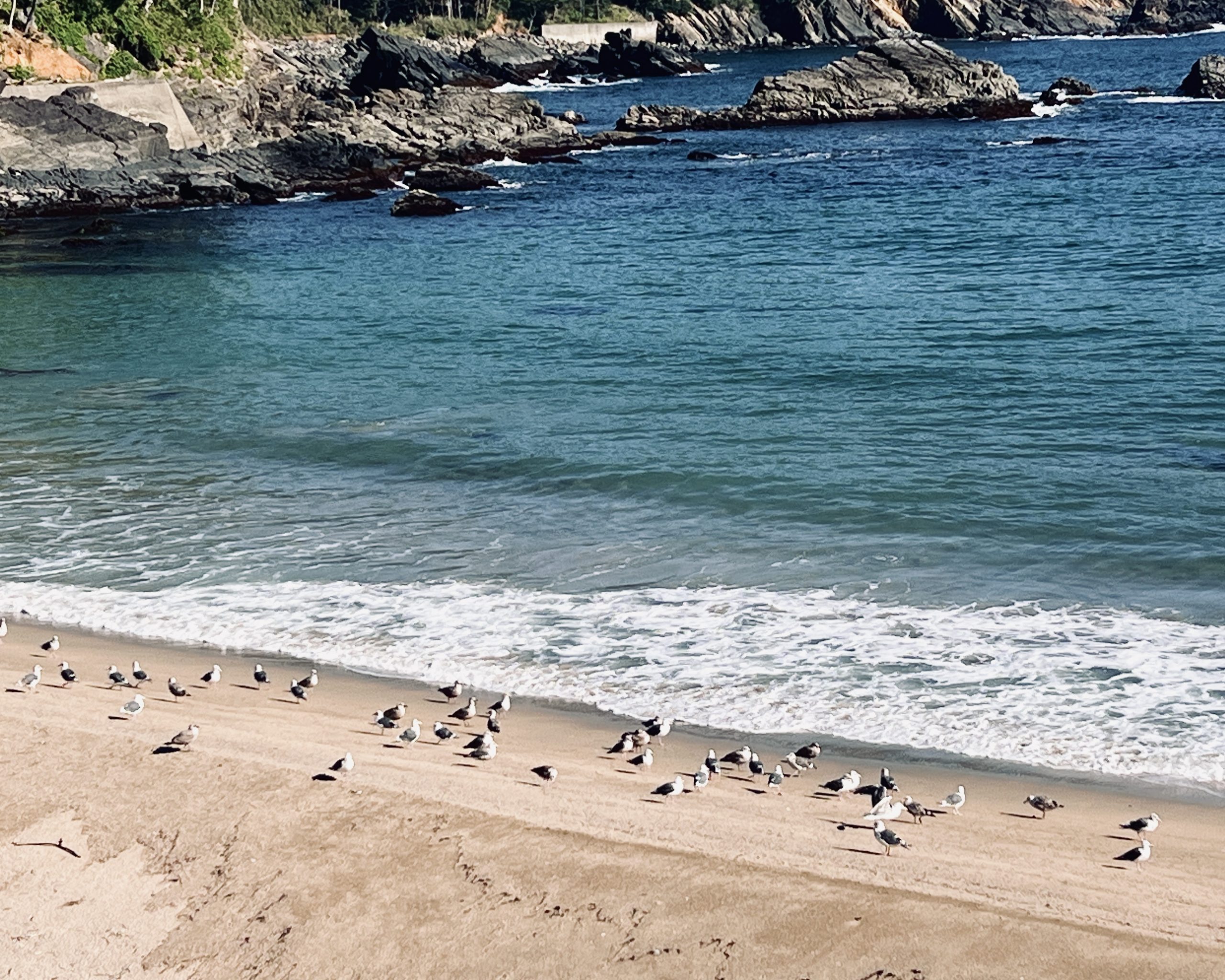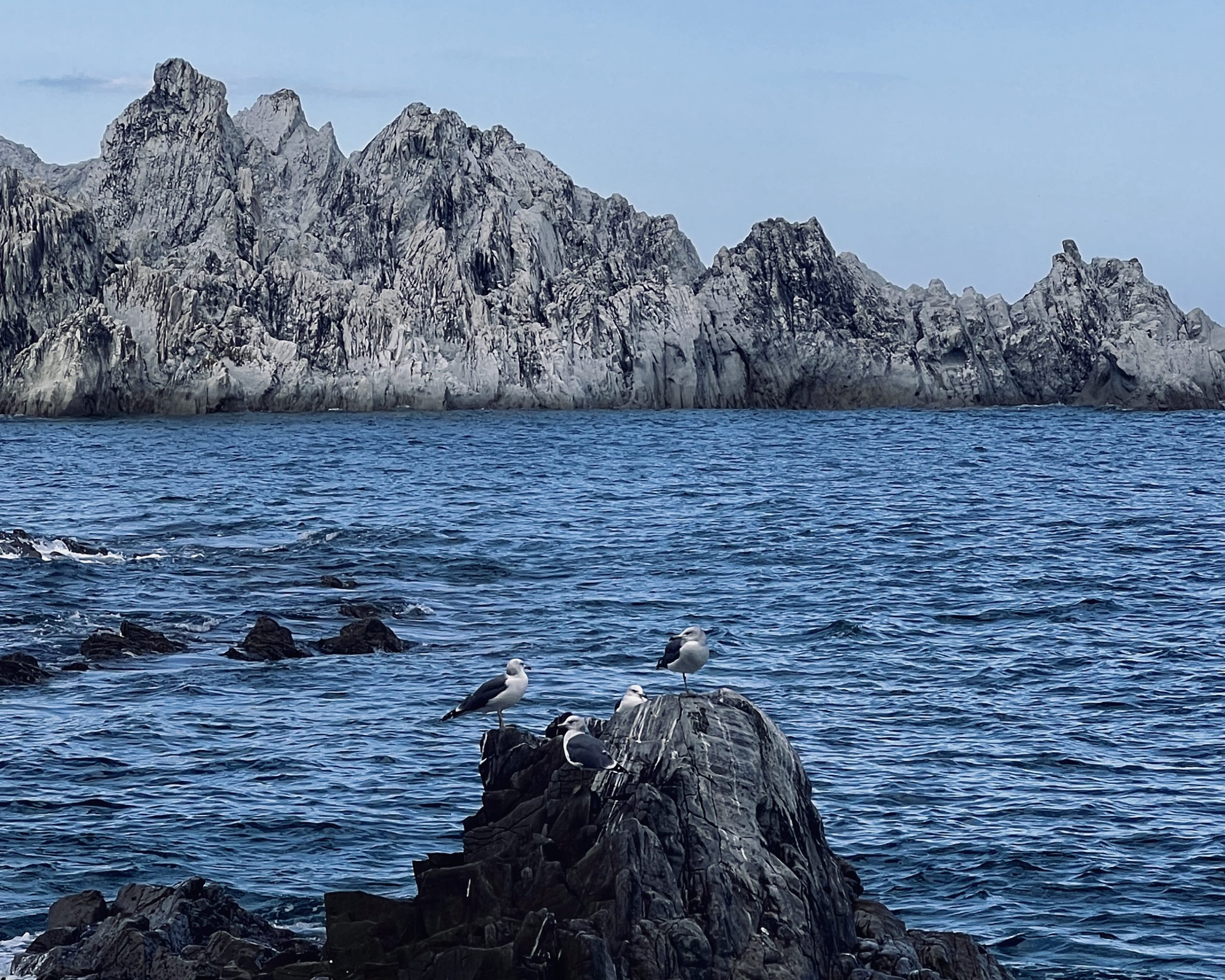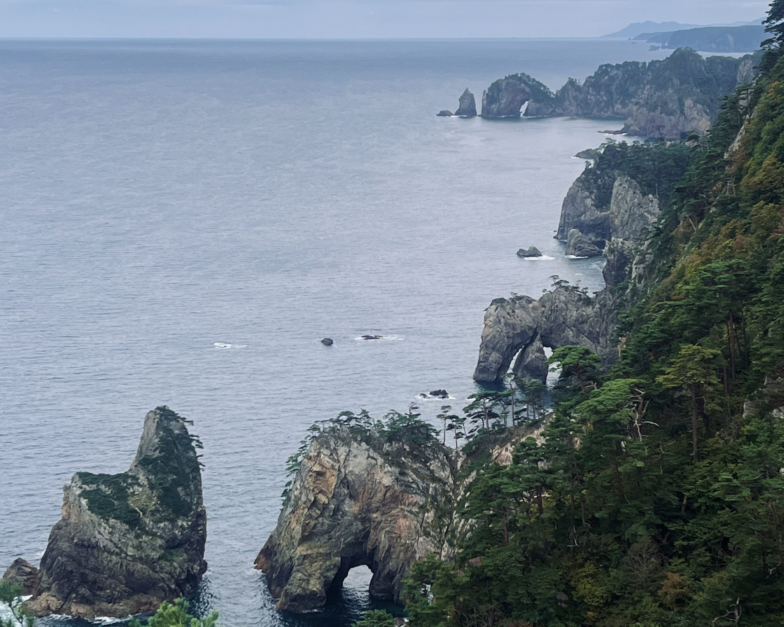 三陸海岸はウミネコの繁殖地であり、彼らが旅を見守ってくれる(宮古市・浄土ヶ浜)