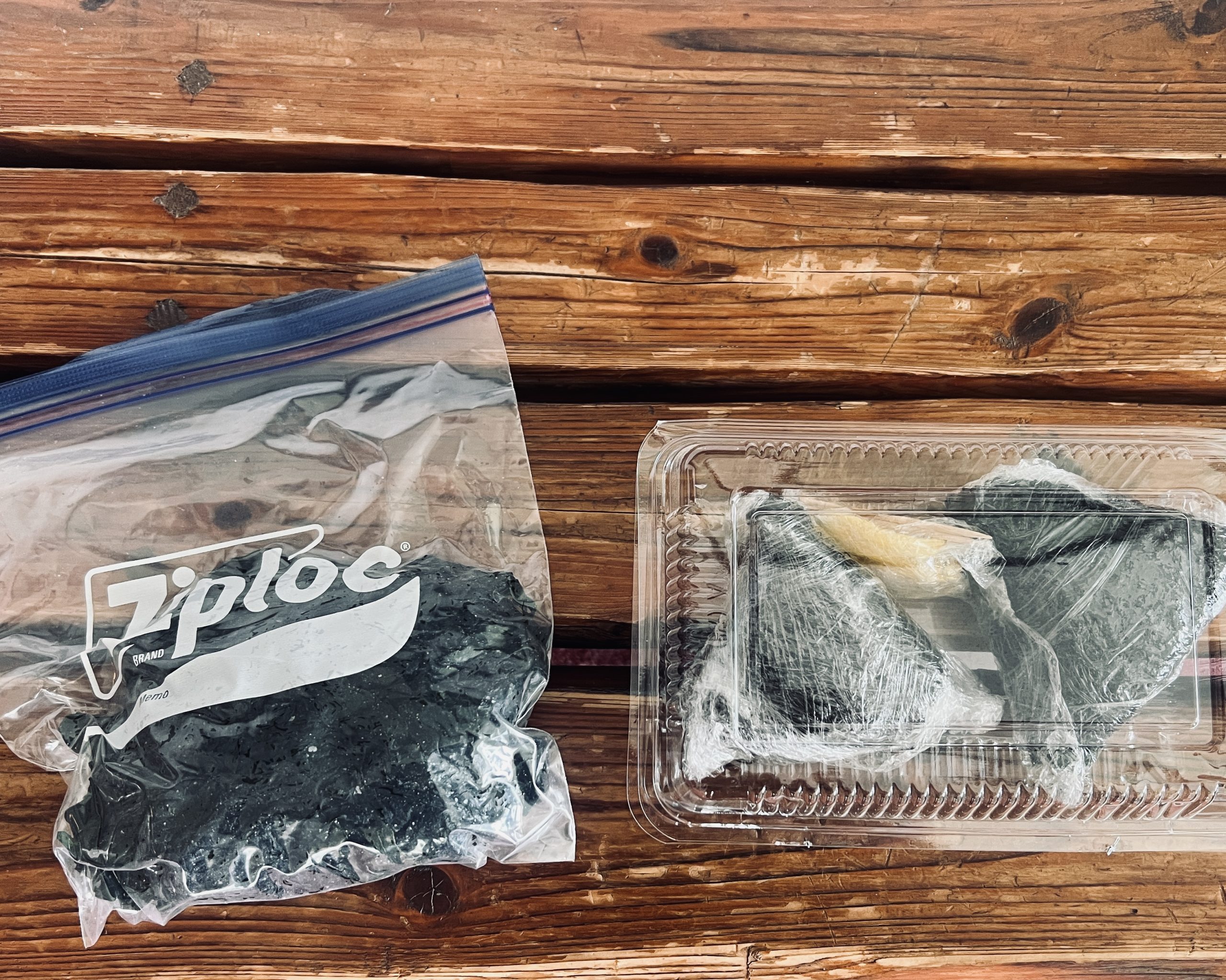 とある民宿でいただいた採れたてのワカメと朝食のおにぎり。受け取った優しさのバトンは、次に繋いでいかなくては。
