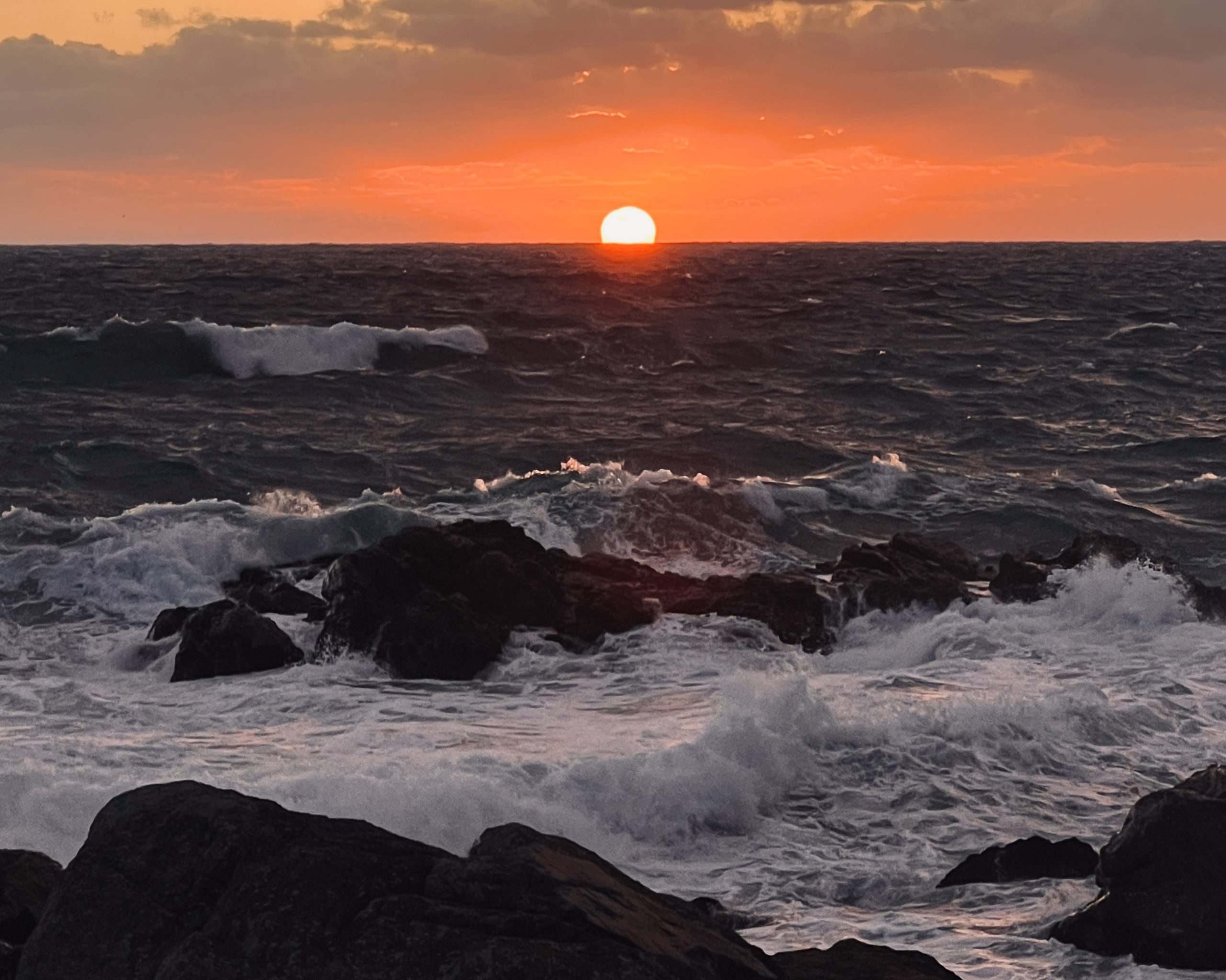 荒々しい海面と対照的な優しい朝日が旅の終わりを迎えてくれた(八戸市・種差海岸)