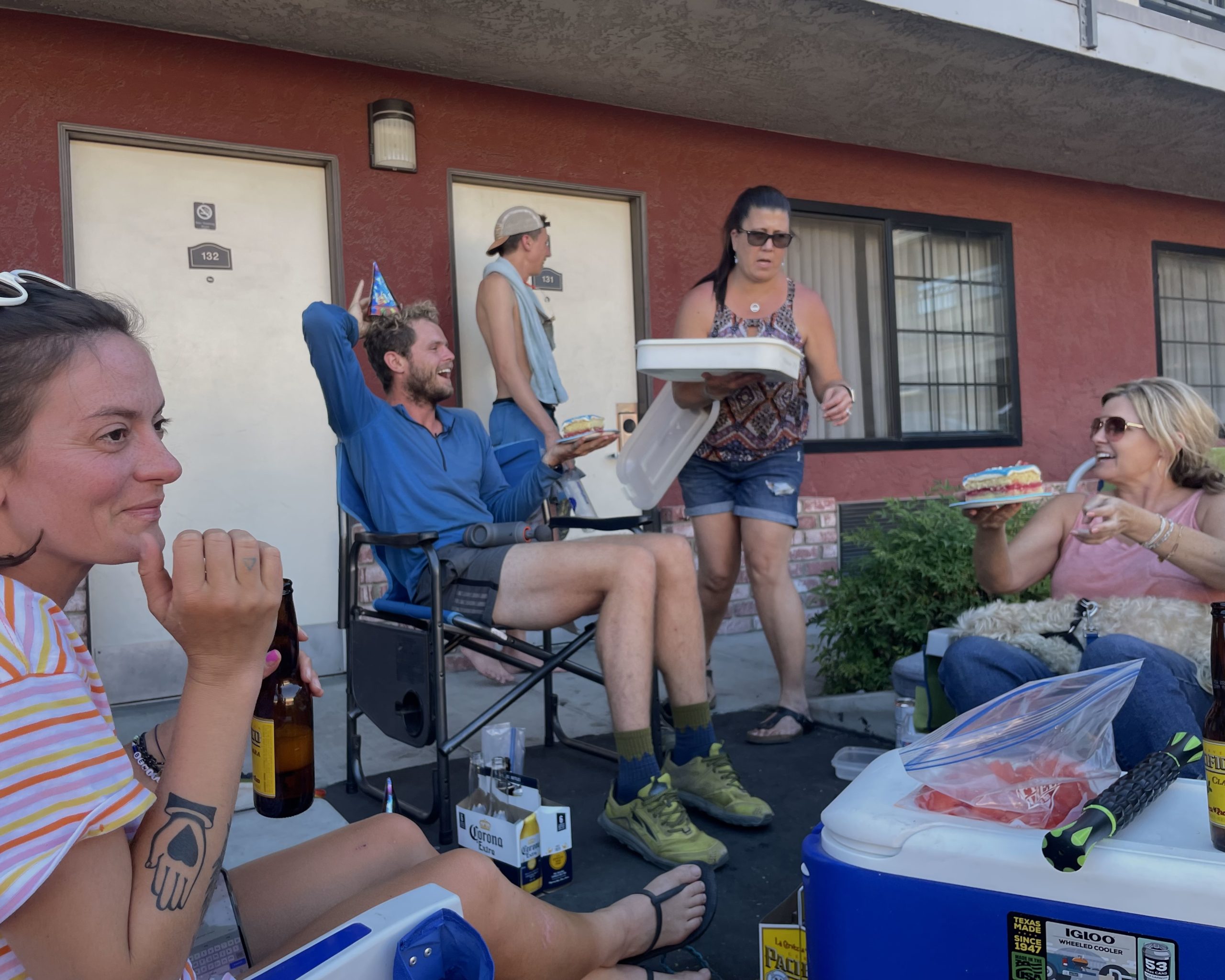 街のモーテルでくつろぐハイカーたち(アメリカ・PCT)