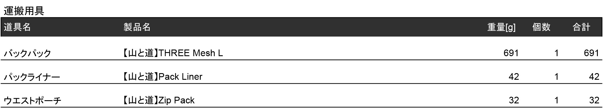 当初は豊岡ファクトリーで作ったばかりの自作MINIで行く予定でしたが、ハイキング期間内で雨予報が多かったため、雨の中での撤収時にも一旦荷物を押し込めるだけの容量の余裕があり、耐水性能もMINIよりも高いTHREEを選択しました。