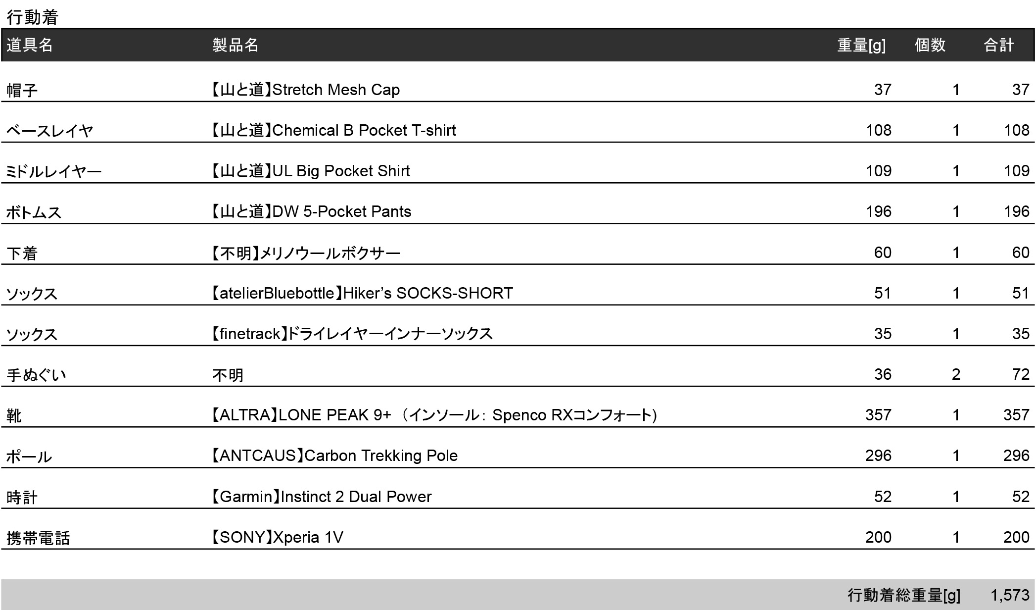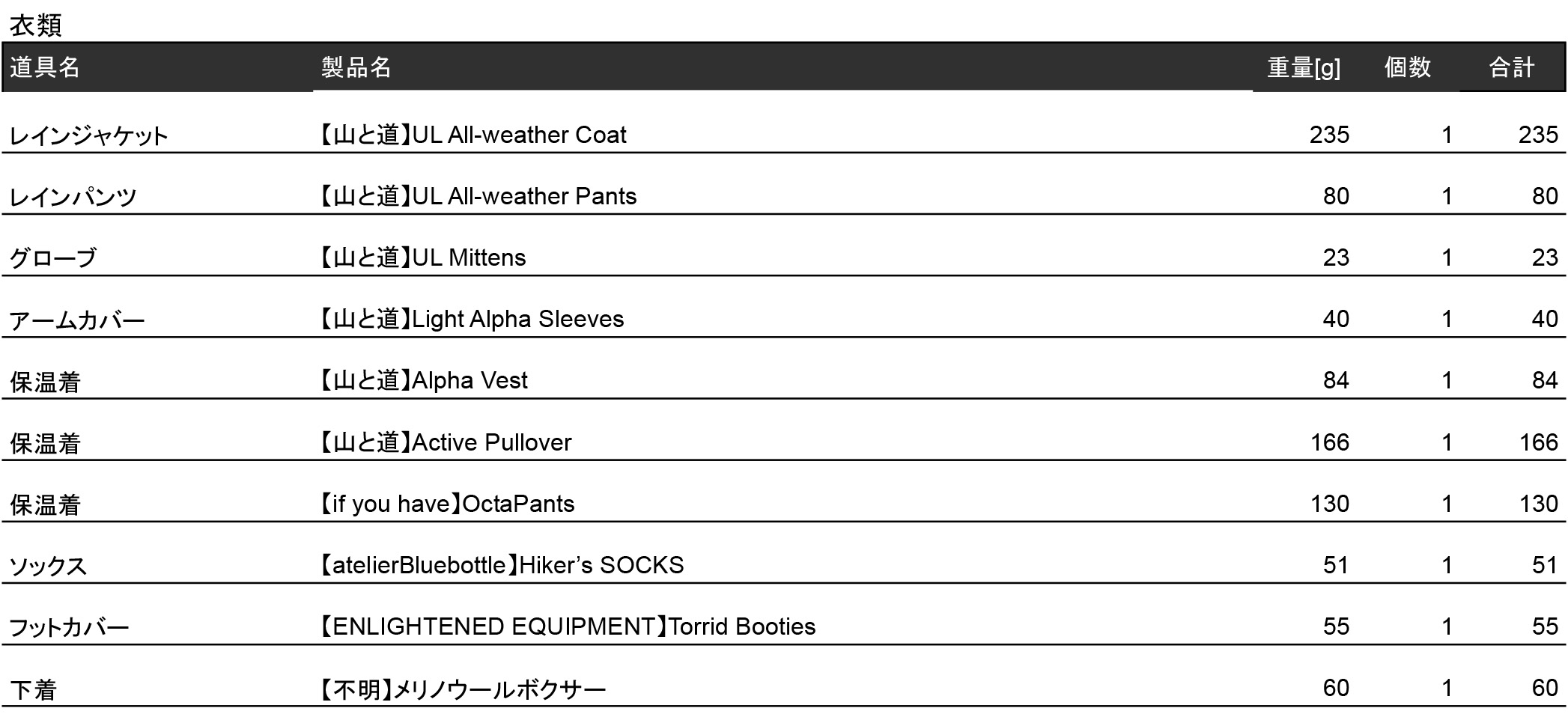 他にもあれこれ持っていきたい欲求をグッと抑えて、なんとか厳選した装備。
