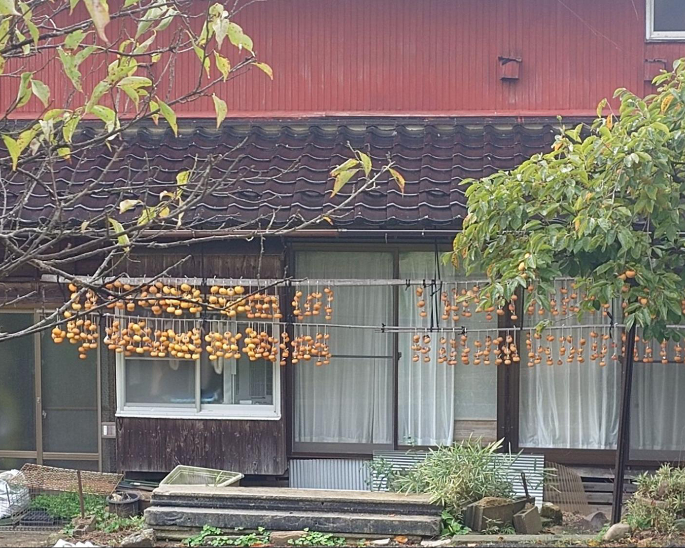 通った家々の軒先にはたくさんの柿が干されていて、秋を感じる風景。