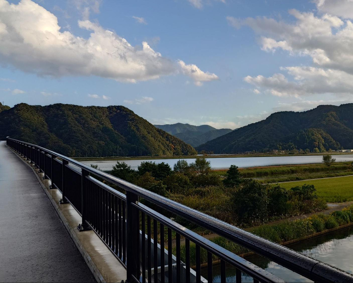 この日はキャンプ場のそばにあるかぶと山に登り、久美浜湾をぐるりと回った後に小天橋を通って岬側から兵庫県に入り、円山川沿いを歩いて豊岡を目指していく。