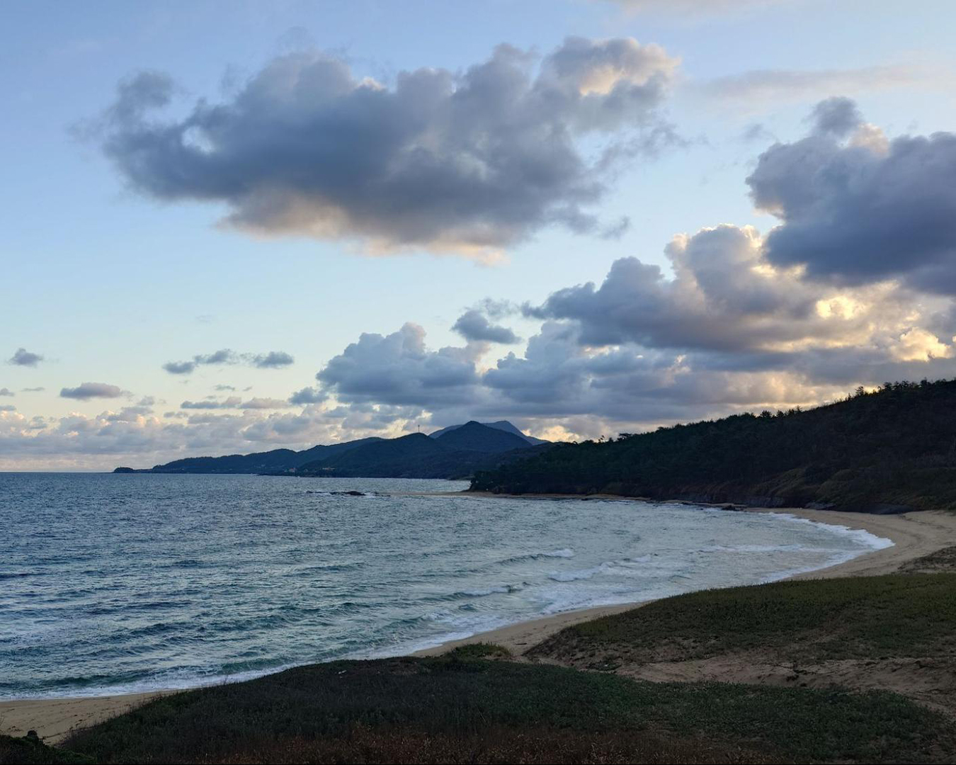 天気も良く、日の出の時間には水平線から昇る朝日を拝めた。「徐福上陸の地」とされている新井崎神社では、鳥居の中に朝日が差し込む神々しい光景に巡り会い、白々と夜が明ける時間の海と空を脇に見ながら歩いていると、何だかエネルギーが充填される感覚に。清々しい気持ちで進んでいく。