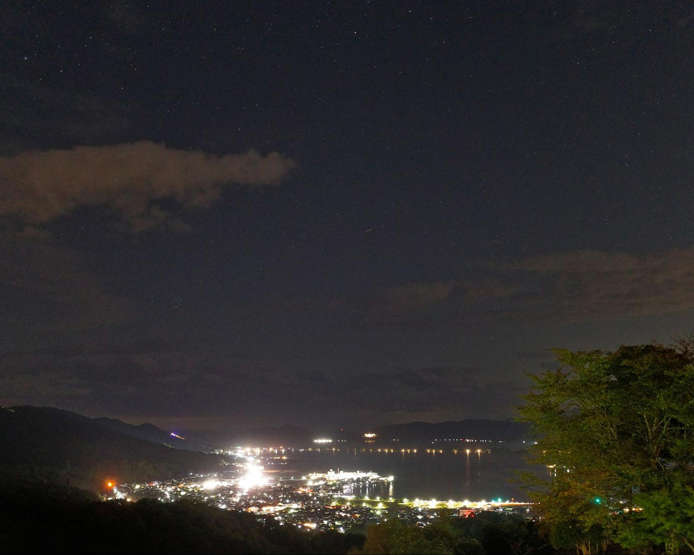 キャンプ場はとてもきれいに整備されていたが、ハンモックを張れる木はなかったため、この日はタープ泊。他の宿泊者は遠くに1組のみ。日が暮れると眼下に天橋立とその周辺の夜景が見えて、とても贅沢な環境であった。