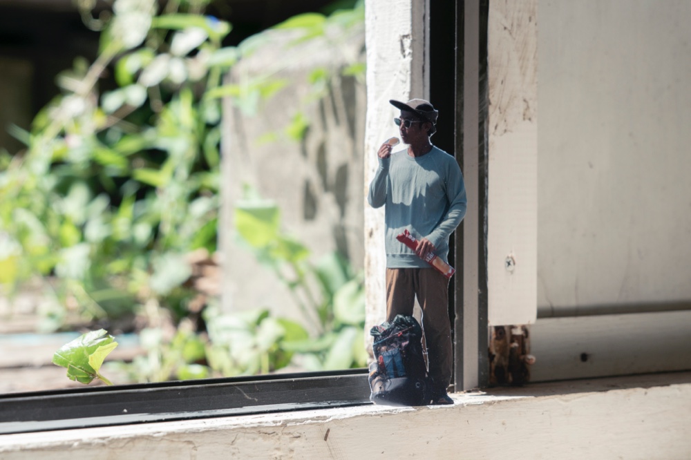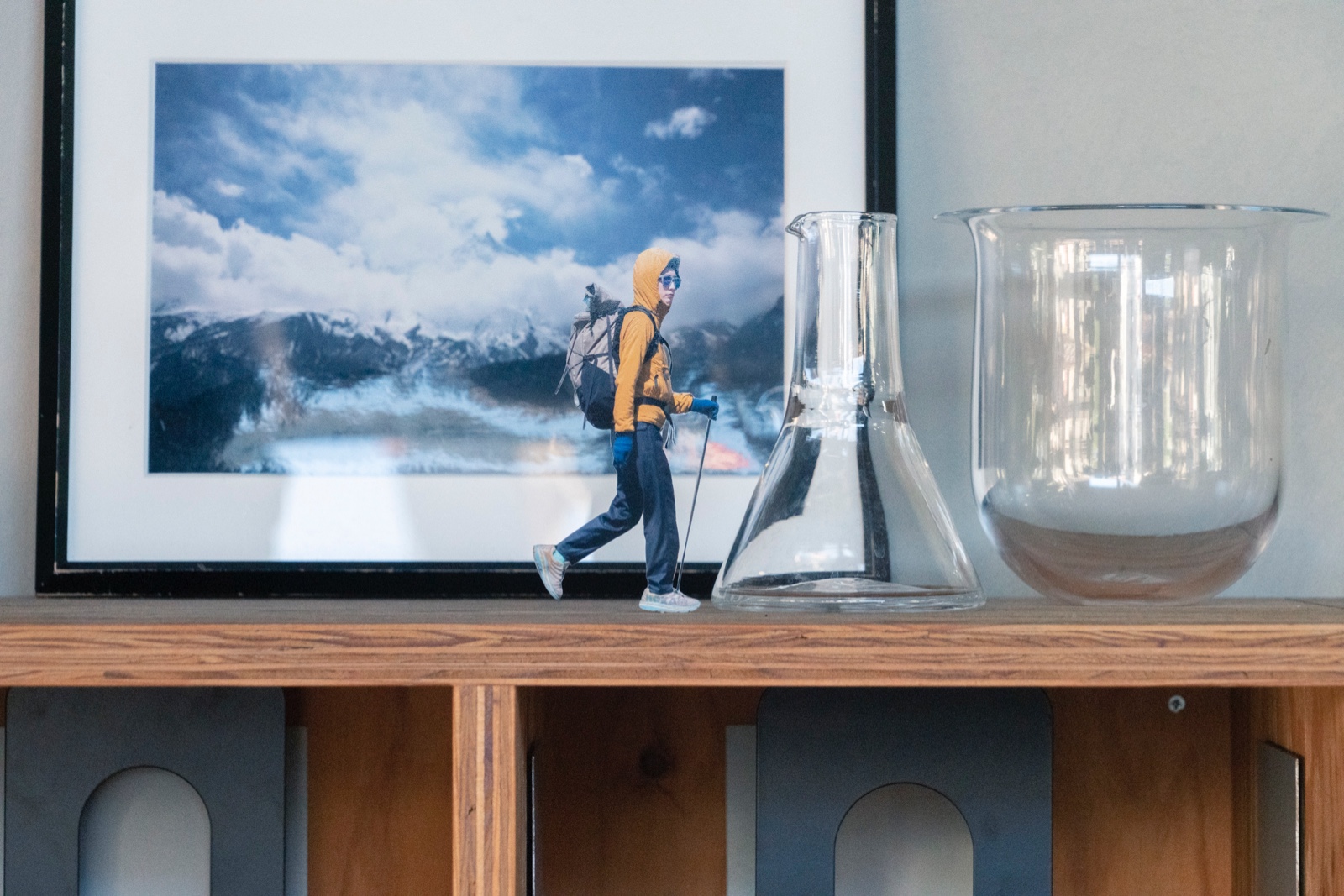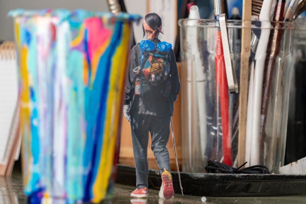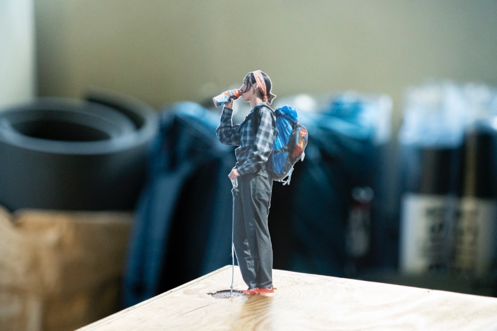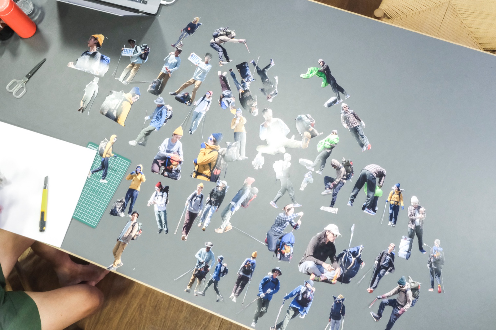 手法自体とくに新しいものではないが、日常生活を送る中で山へ馳せる想いが高じて、幻覚のように机の上をハイクする姿を絵にすることができれば、「渦中」である今の気分にピッタリなのではないかと思った。名付けて「Desktop Hiking」。