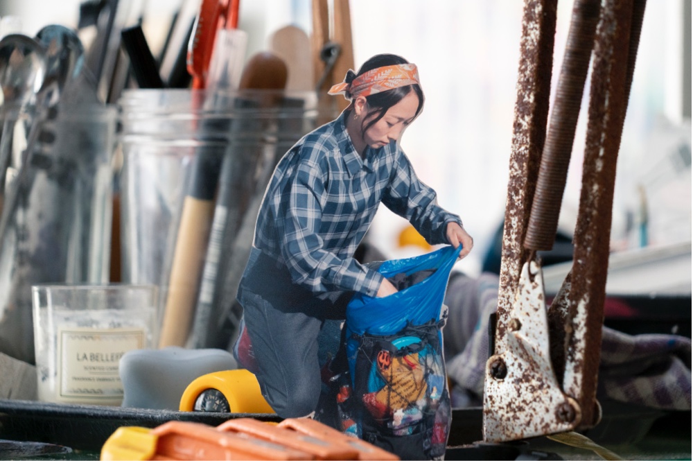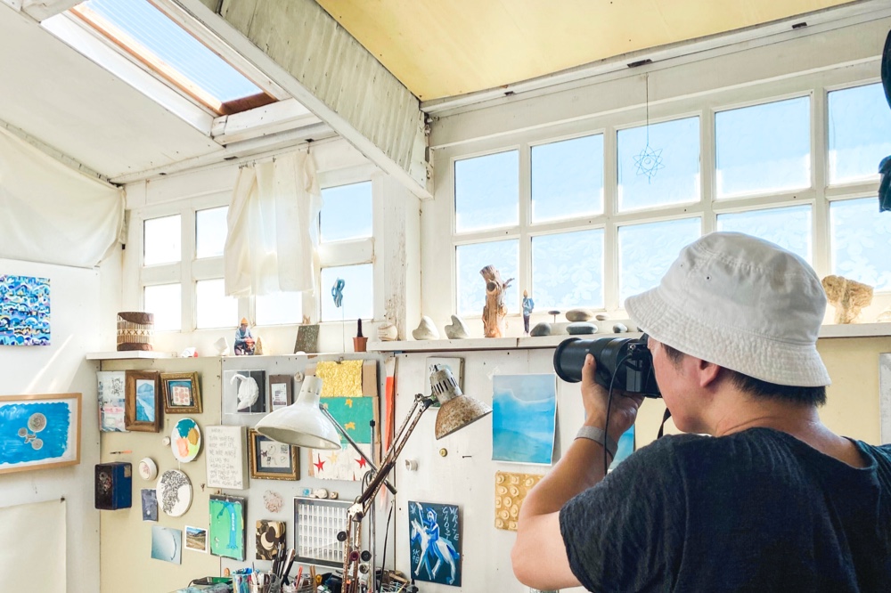 江ノ島のはずれにあるアトリエは天窓からもきれいな光が入る。撮影を進めていくと、世界中を旅しているような気分になった。(夏目)