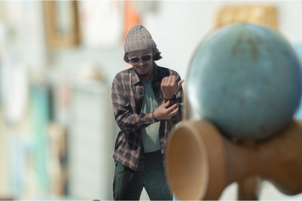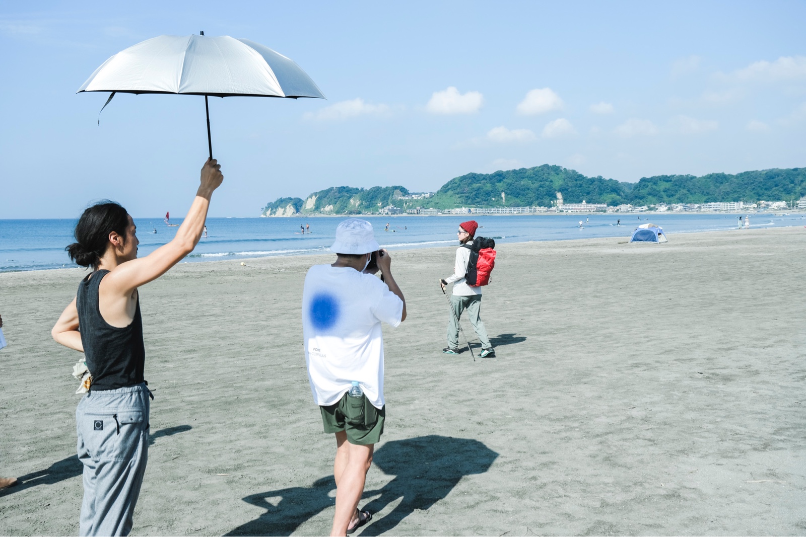 灼熱の材木座海岸でモデル撮影を行い、研究所の仲間たちとハサミでチョキチョキ。そしてアーティストのカザマナオミさんの江ノ島のアトリエで幻覚が始まった。