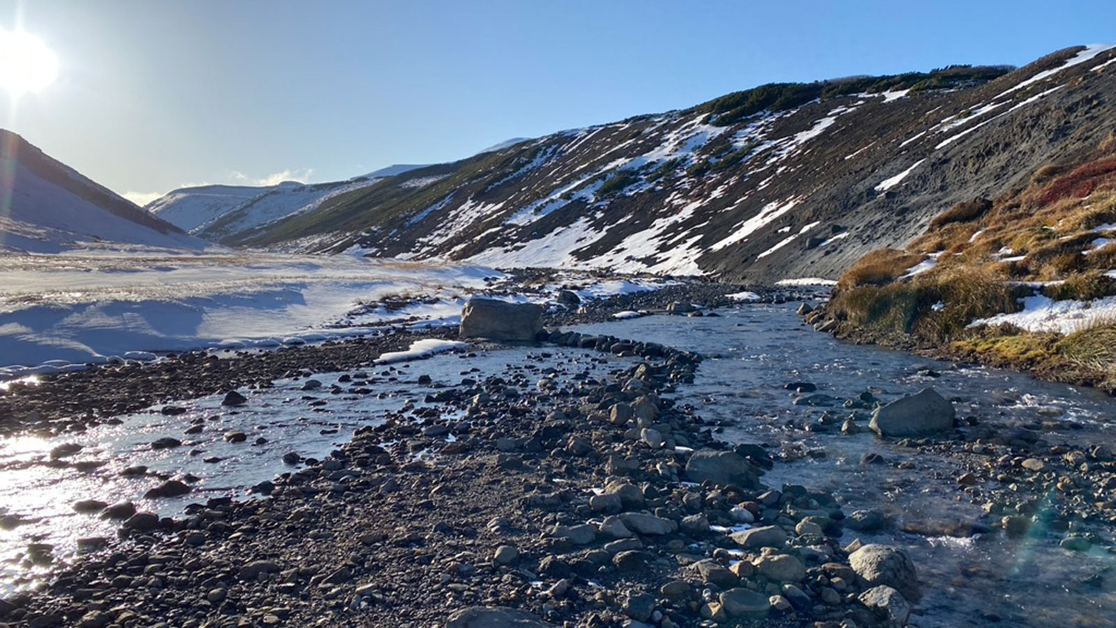赤石川は美しく、凍結していなかったのでここで水を汲めば良かったと思うが、危ない危ない。この水源辺りは有毒温泉だったから飲めないだろう。