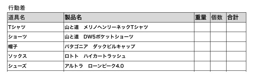 *ベースウェイトは食事・水・燃料などの消耗品を除く装備の重量です。