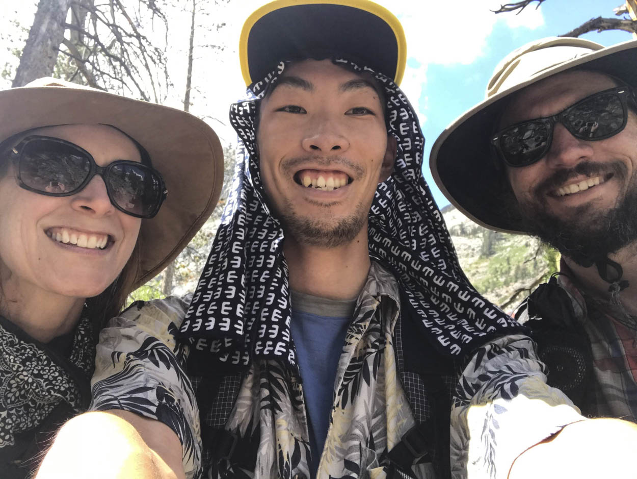 JMT3日目evolution meadowへ向かう手前で出会ったカンザスから来たジェーンとジェド。9日間のJMTセクションハイクの道中だという。僕が歩く道を話したら「とても良いエリアを選んだね」と言われて嬉しかったのを覚えている。(むとちゃん) 写真提供:武藤央展