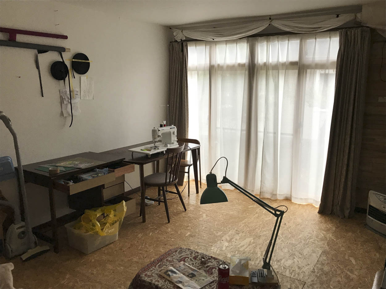 そうなんです。この部屋、ご覧のとおりかなり狭いんで。祖父母が住んでいた家が10年くらい空き家になっていて、母も片付けないとねと言いつつ手がつけられていなかったんです。それで、僕、仕事辞めて時間あったんで、その家の片付けを始めたら、いい感じの洋間がひとつあって、そこをミシン部屋にさせてもらおうと思ったんです。庭の草刈りやDIYで部屋をリノベーションすること自体が楽しかったですね。