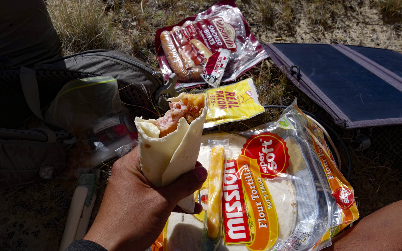 そのことを反省し、2017年にコンチネンタル・ディバイド・トレイル(CDT)をスルーハイクした際は歩きながら肉体を強化して、なおかつ安価な食べ物を模索し始めることとなった。と言っても、求める栄養素全てをトレイルで確保し続けることは難しい。マウンテンハウスなどのブランドは美味しく栄養価の高いトレイルフードを販売しているが、これらは1食分が8ドル近くするので、半分ホームレスのようなスルーハイカーたちにはなかなか手が出せない代物だ。ゆえにハイカーたちはスーパーで安価で軽量な食材を探し、工夫して食べるしかない。