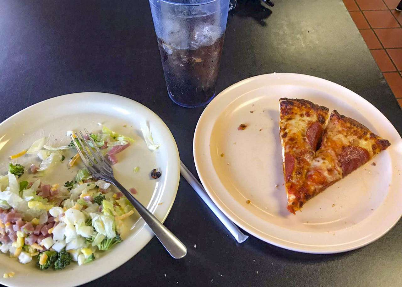 街に到着して何気なく入ったピザ屋はとても良い店だった。ピザの味はいたって普通だが、可愛いウェイトレスが暖かい対応してくれるので、ハイカーフレンドリーなのが伝わる。