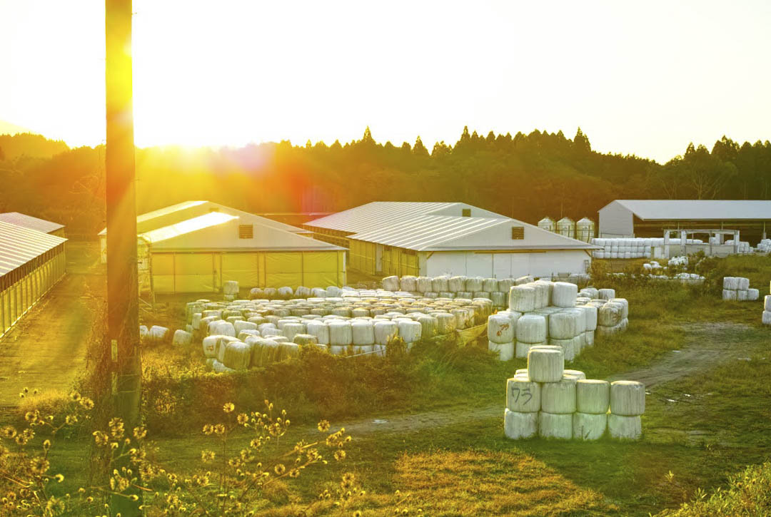 牛舎や牧草地帯、畑などが続くのは食料自給率の高い九州らしい風景だ。