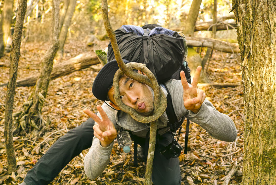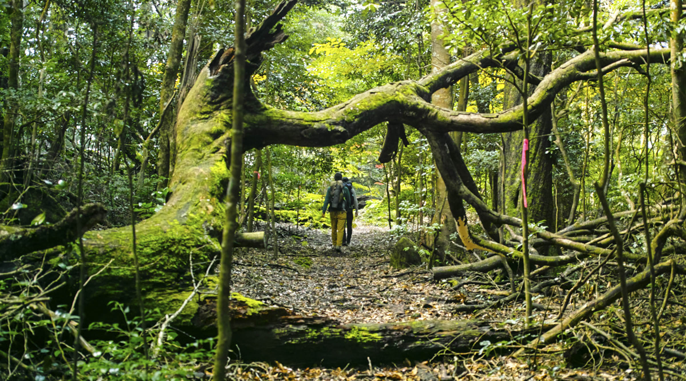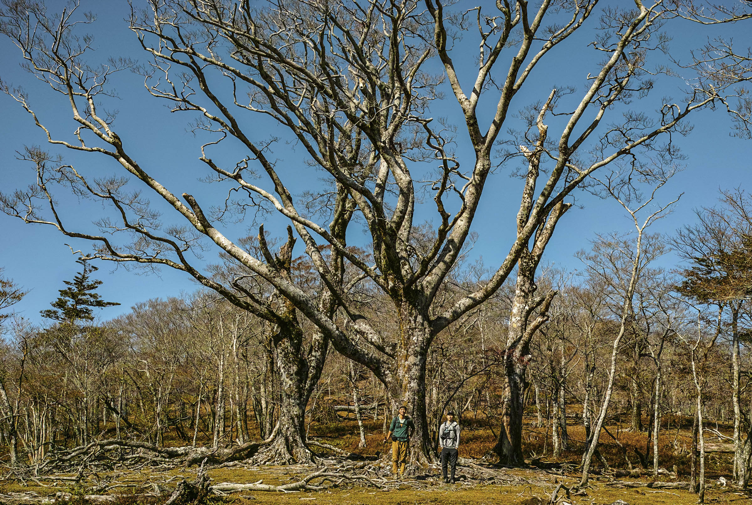 台風が多い九州の山深い稜線はさすがに倒木が多いが、威風堂々とした巨木や原生林の風景には特有の美しさがあり、しばらく眺めたり、写真を撮ってはふたりの後を追いかけた。