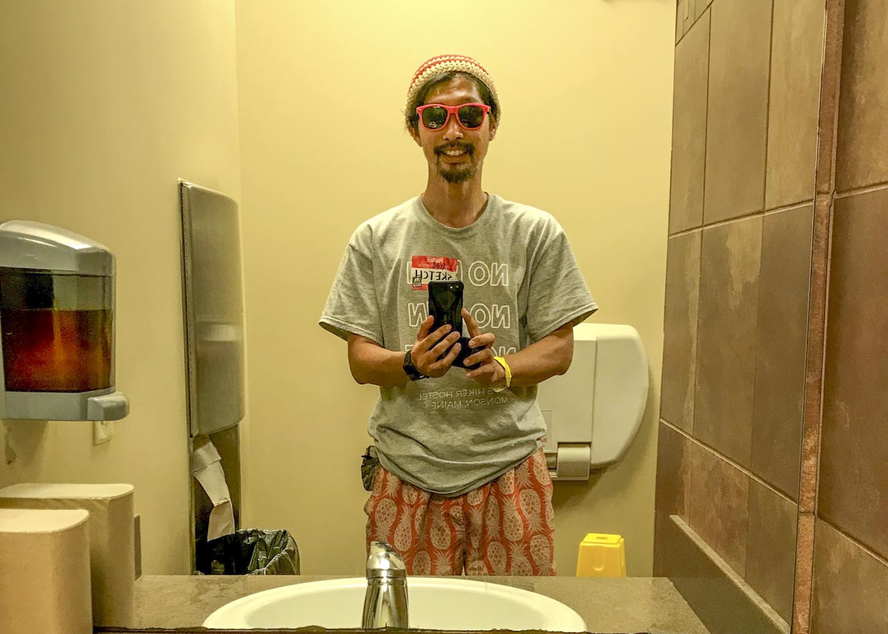 僕は教会を後にすると、昨日のトレイルエンジェル宅の炊き出しボランティアをした際にもらった「NO PAIN, NO RAIN, NO MAINE(MAINEはアパラチアン・トレイル最後の州の名前)」とプリントされたTシャツに着替え、広場でREIのワークショップでサングラスを作って装着し、次に年配の方達が手編みした麻の帽子をもらって被った。ゴッドスピードのコスプレには劣るが、間に合わせにしては次第点といった感じにはなっただろう。