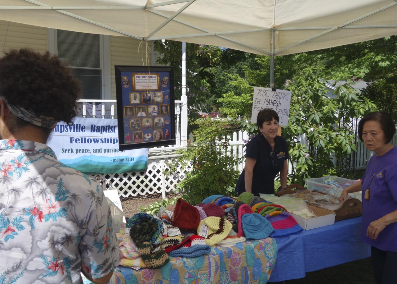 ハイカーたちへ手作りの帽子を配るエンジェルたち。アパラチアン・トレイルの優しさを感じる。