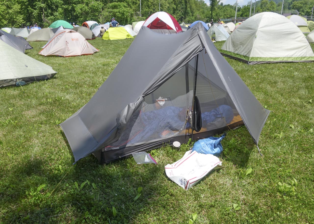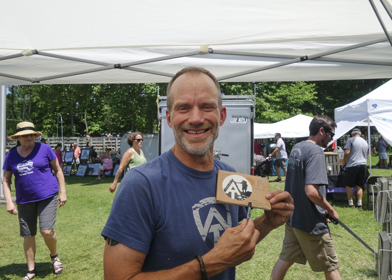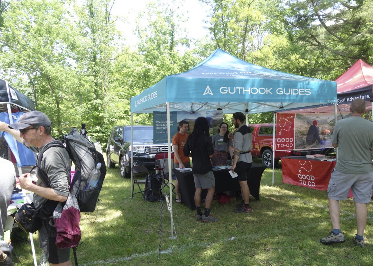 広場にテントを設営したのちに、さまざまなアウトドアブランドのブースを眺めながら、ふらふらと歩いていると声をかけられた。そこにいたのは数週間前にトレイル上で会ったハイカーたちだ。彼らはダマスカスより少し離れた街からトレイルエンジェルの車に乗って会場にやってきたという。