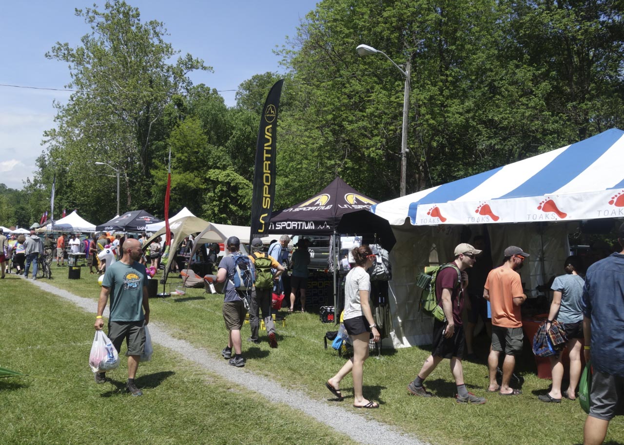 さまざまなブランドのブースが並ぶ。B級品が安く売られたり、ギアのリペアサービスがあったりとスルーハイカーには嬉しい。