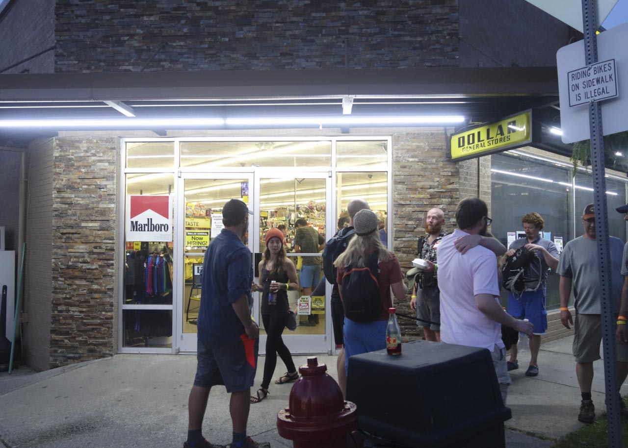 『ジェネラルダラー』の前にはハイカーがたむろしていて、みんな考えることは同じなようだ。僕らは会場でとにかく酒を飲み続け、そしてなくなるとまた店に戻る。