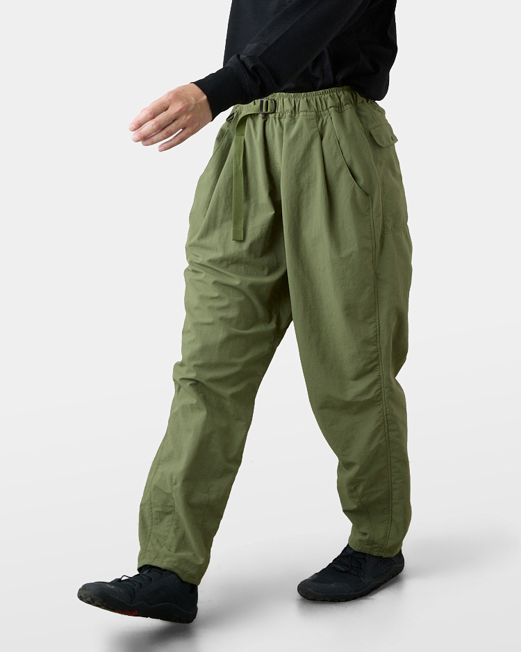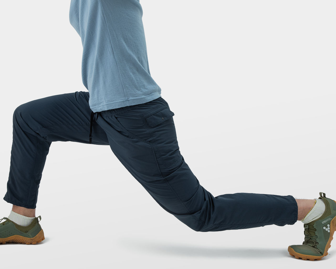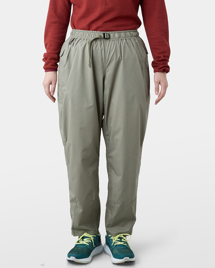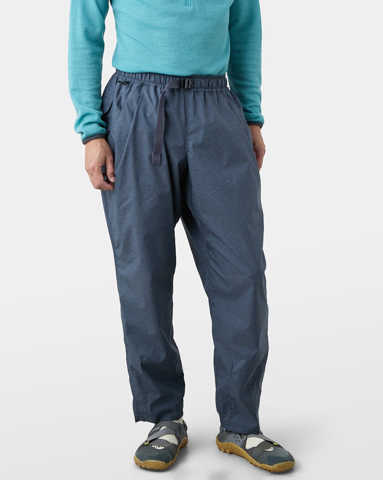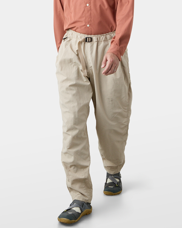山と道のパンツは動きやすさを独自のパターンと「いせ」と呼ばれる立体的な縫製で解決しました。その結果、膝のあたりに立体感があり、ヒップから太ももにかけてゆとりがあるシルエットになっています。