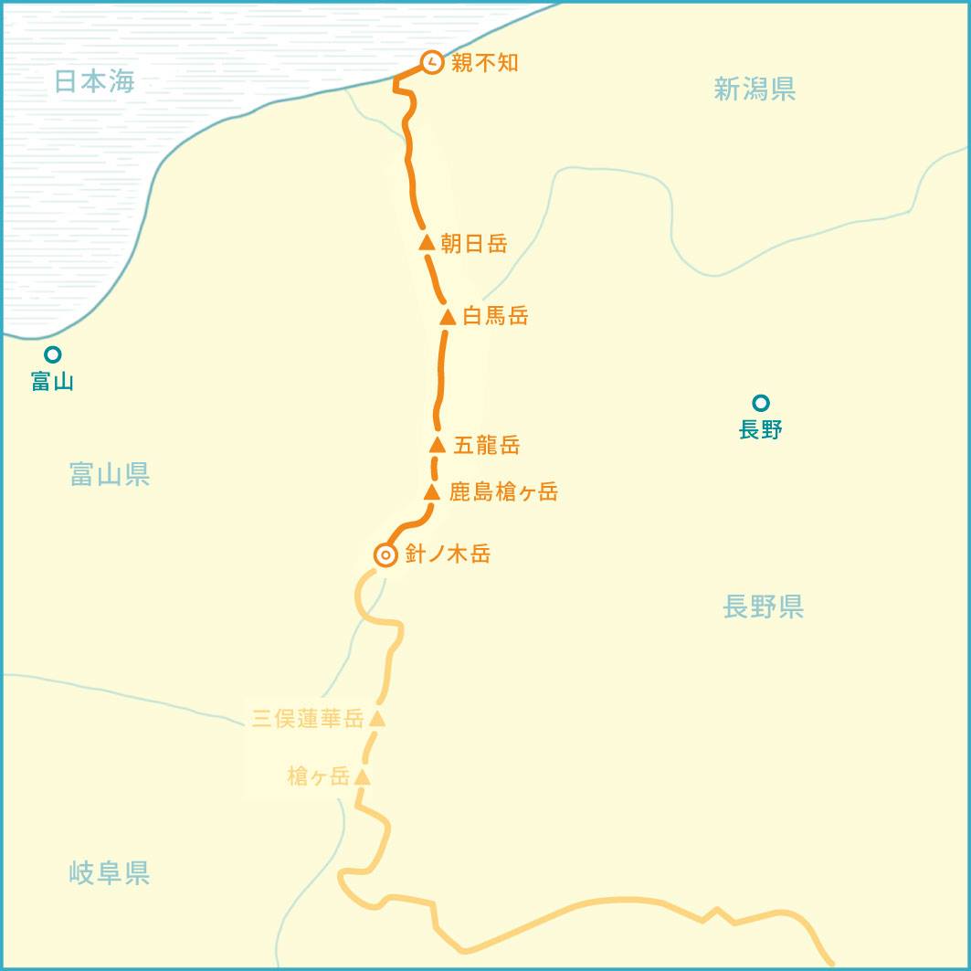日本海に面した新潟県の親不知から北アルプスの鉢ノ木岳まで、三日間で約60kmの行程