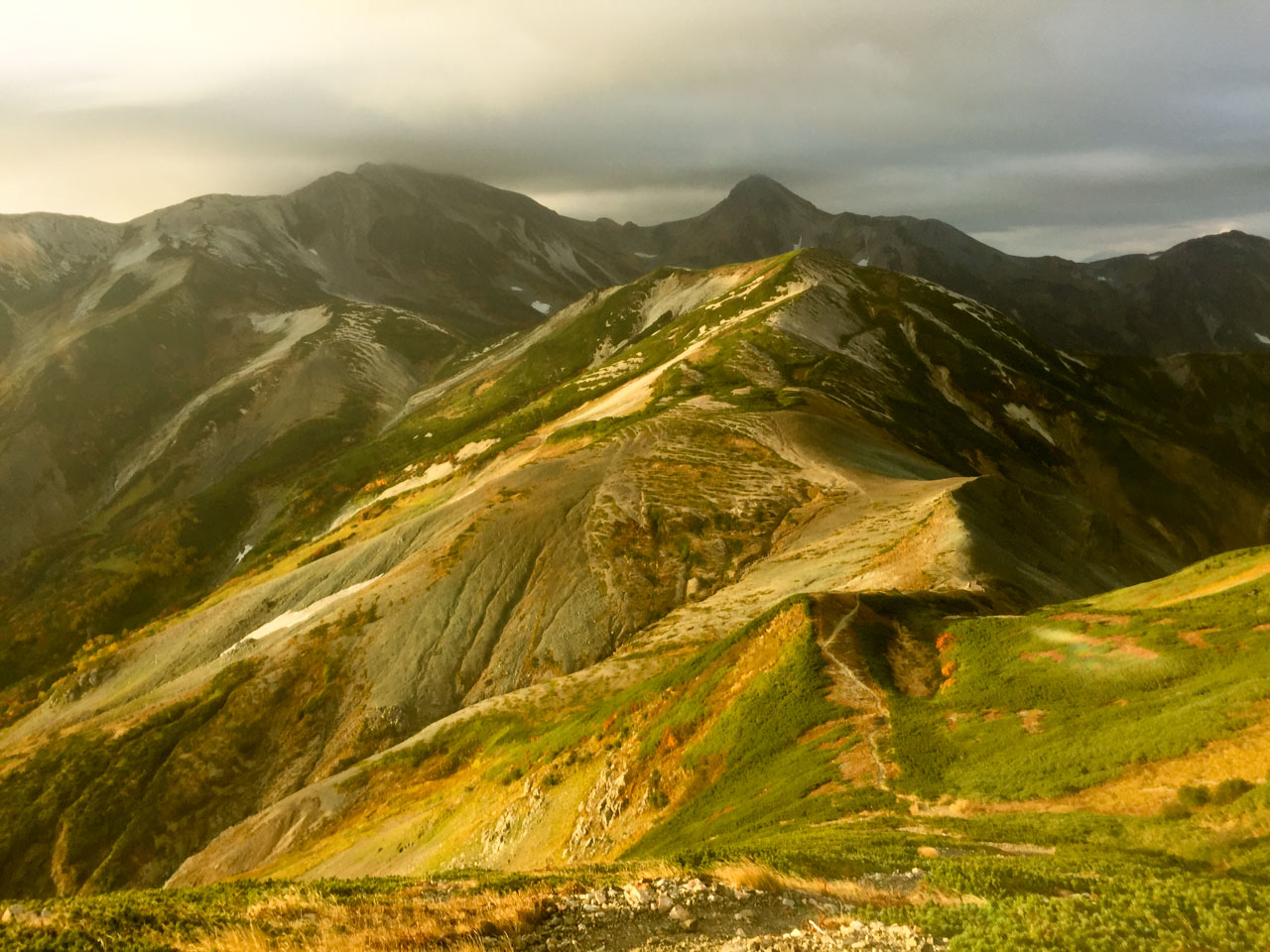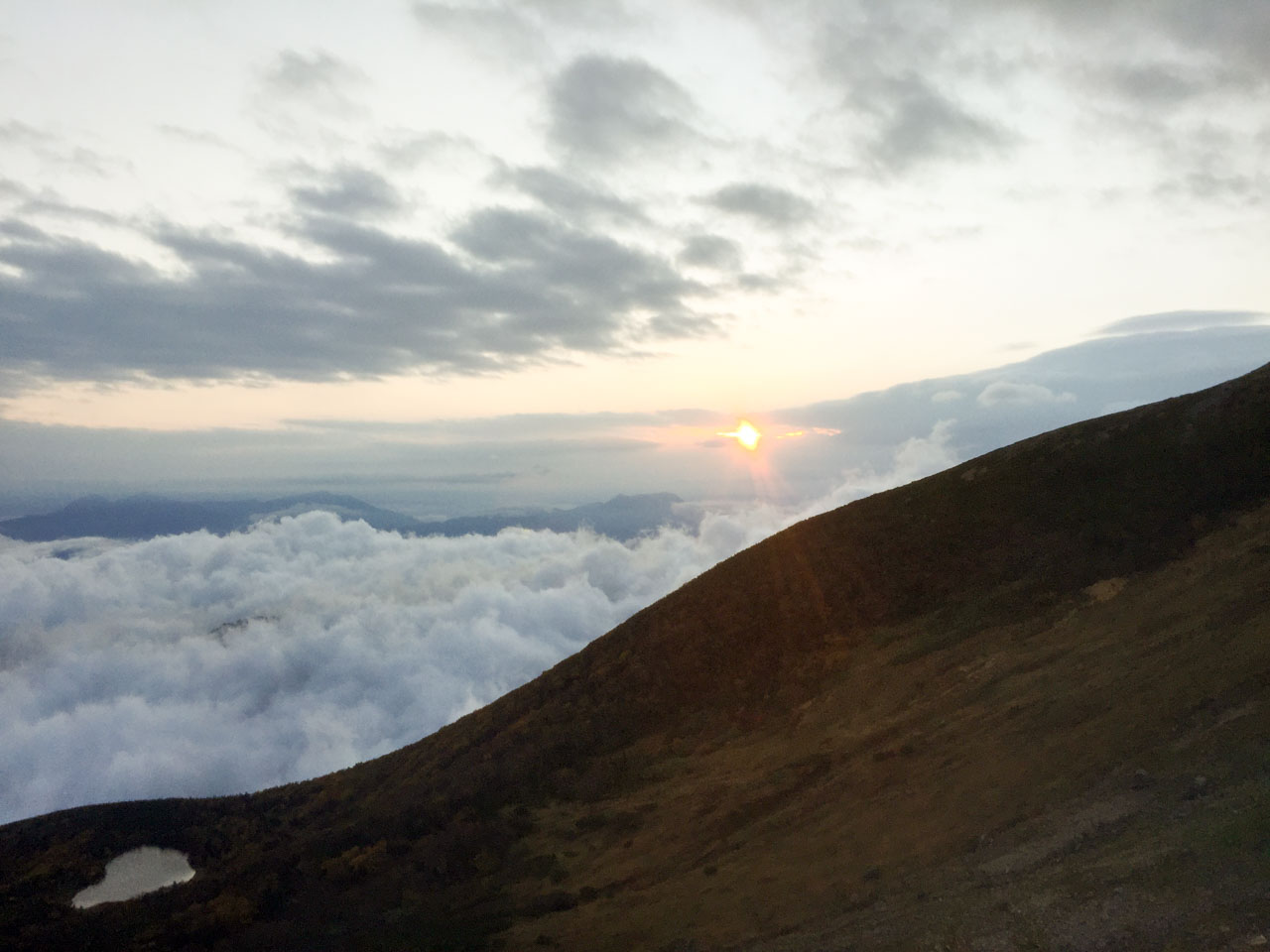 ご飯が頼めなくなると困るので、朝日岳から小屋までの下りも急ぐ。景色は美しく、光で世界が輝いていた。夕食の予約は問題なくOKでほっとする。ここまで日本海から一気に上がってきた自分を誇らしく感じた。