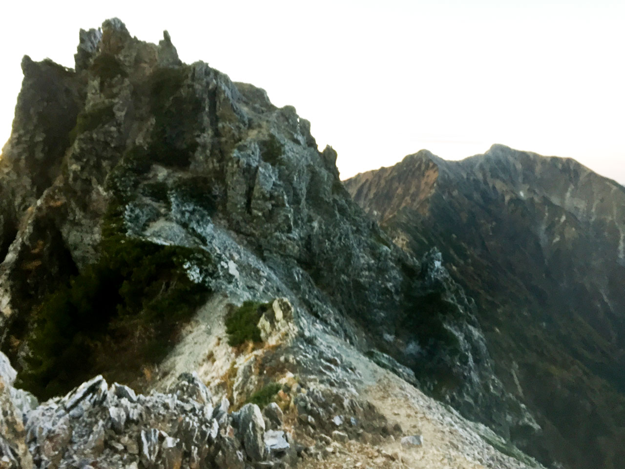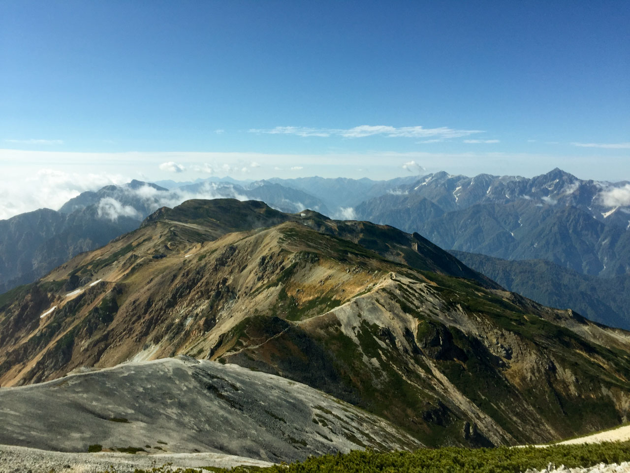 ところが、体力が続いたのは黒部湖が見渡せる赤沢岳までだった。心身ともに疲れきり、もう走る体力も気力も残っていない。歩く屍のようになり心もすさみ、「何がファストパッキングだ!」「クソ!」 と心に悪態をつきながら歩いている始末。さらに針ノ木岳の手前にニセの頂上があり、登りきったところで奥に本物の針ノ木岳を見つけて心を砕かれる。でも、ボロボロのボロボロになりながら針ノ木岳を登りきると、どこか清々しい気分になった。