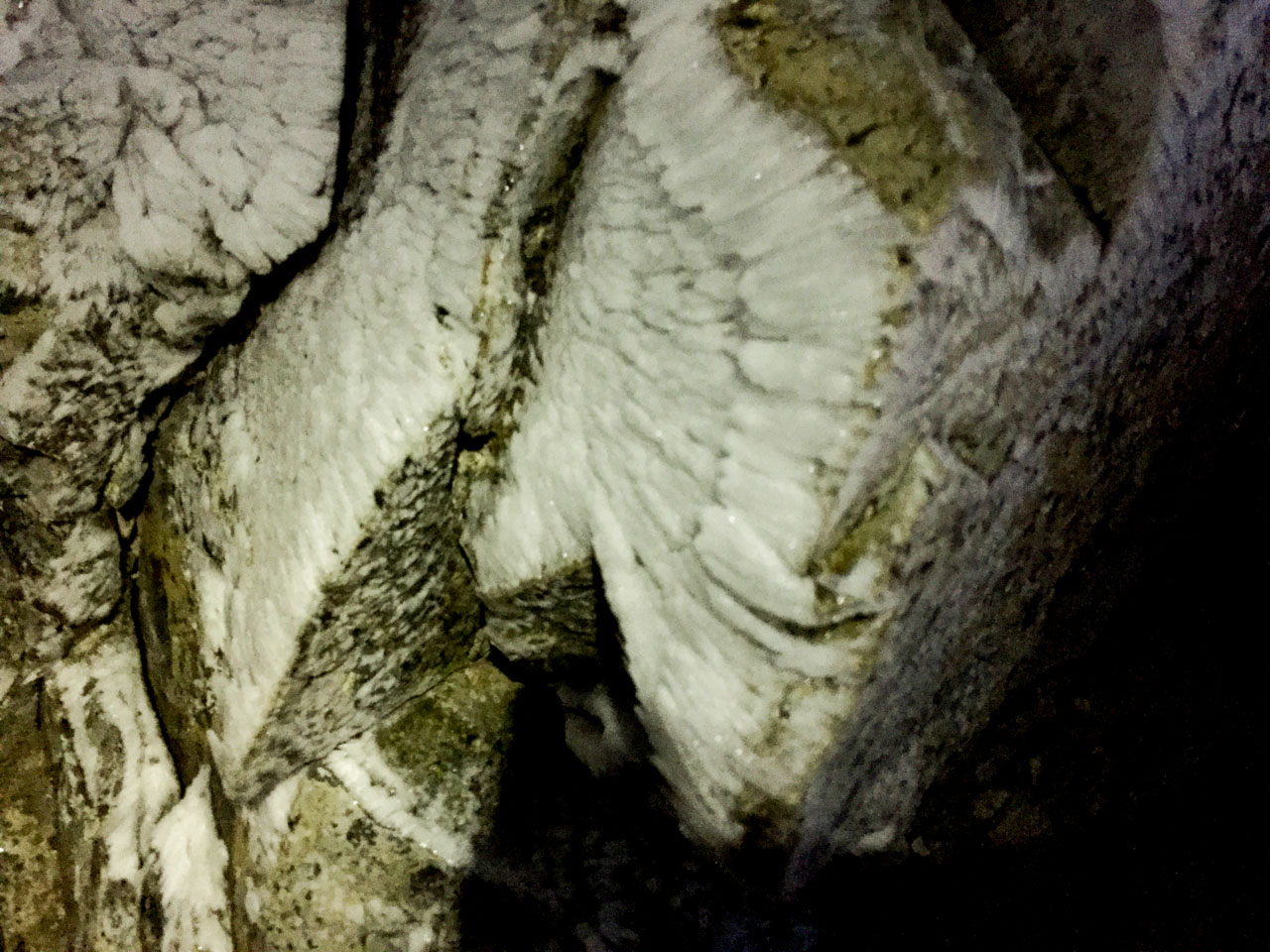 五竜を越えると、鎖場の鎖に海老のしっぽ(雪が風に吹かれて鎖や木々に海老のしっぽのように付いている様)が生えていた。斜面も霜がつき、持っているものをすべて着込んでも寒さが止まらず、このまま行動するのは危険だと感じた。