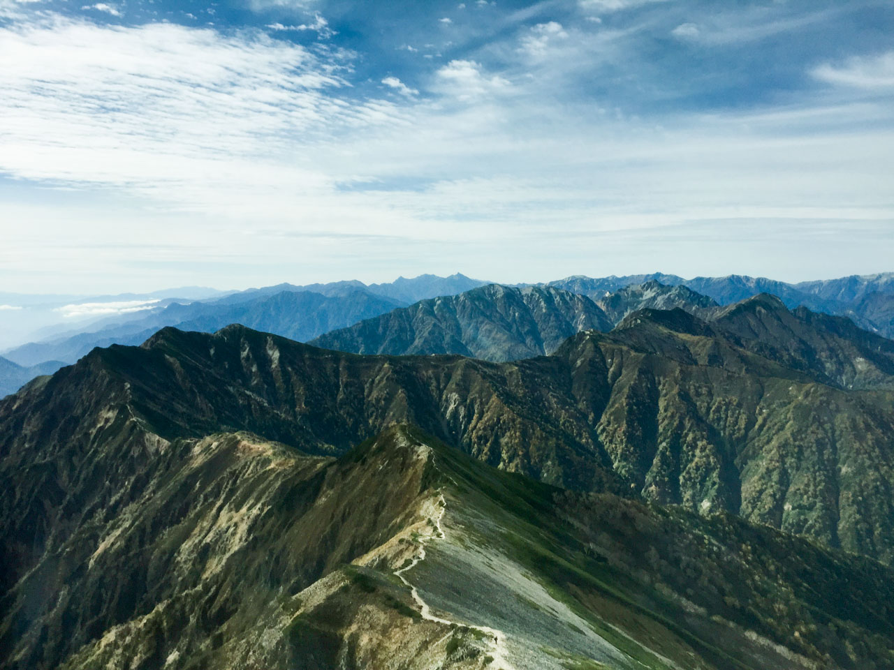 午後15時、朝日岳の山頂に到着した。親不知からのコースタイム21時間のところ、約半分の11時間しかかからなかった。ここまでとても美しい道を歩いてきたけれど、ほぼ誰も歩いていなかった。海から歩いて北アルプスにたどり着くのは、とても感慨深い体験だ。