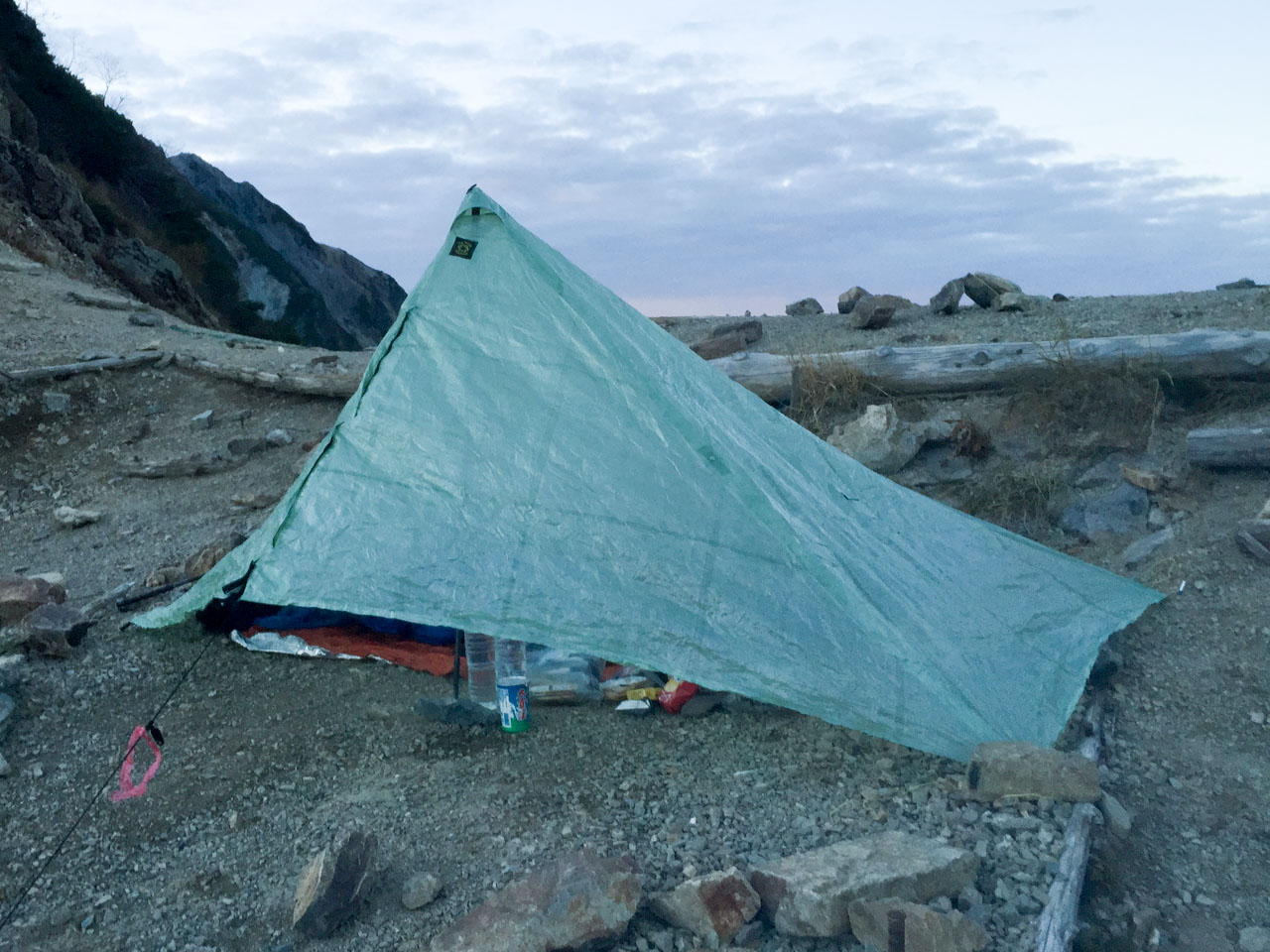 一旦眠ることができたのだが、バタバタとはためくテントに目が覚める。夜中に風でテントが倒壊していた。面倒くさいのでそのまま寝ていたのだけれど、なにか風で飛ばされると困ると思い直し、なんとか立ち上がってテントを張り直し、もう一度寝た。