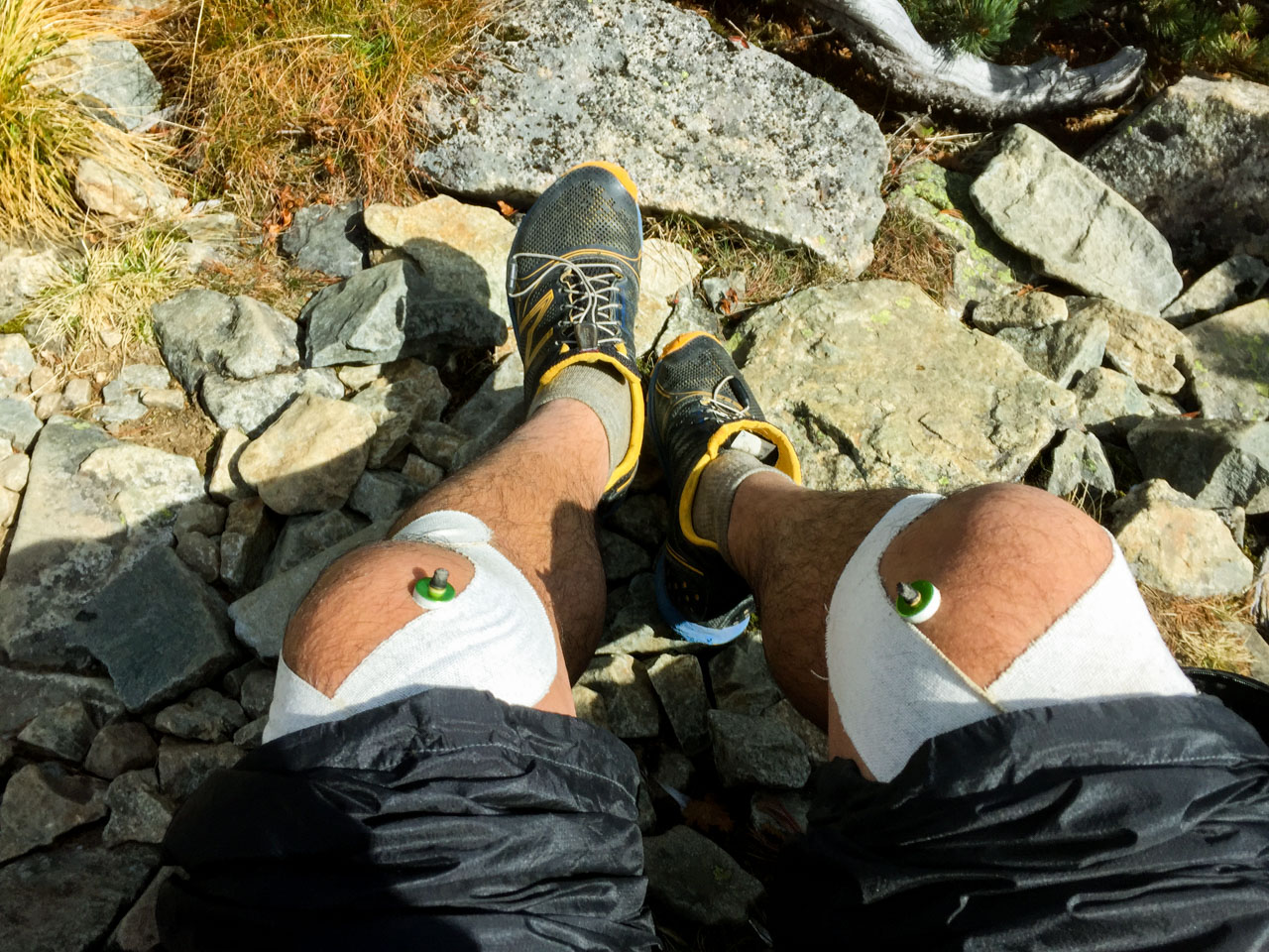 キレット小屋で朝食にカップラーメンを食べた。昂り過ぎた精神状態が太陽とカップラーメンの暖かさにほだされて、少しづつ正常な状態に戻ってきた。ほっと一息をつき、鹿島槍を登っていく。途中で疲れた足をいたわるために足にお灸をして休んでいると、誰も来ないと思っていたのに人が登ってきて恥ずかしかった。さぞかし、僕を見てトレイル脇でお灸をしている変な奴と思ったことだろう。