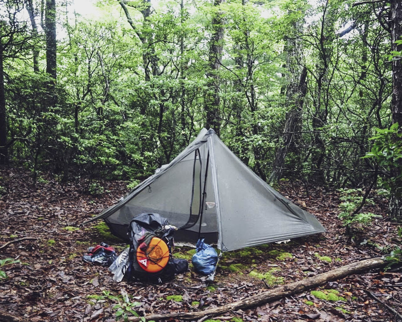 アパラチアン・トレイルはマダニが多いので、フロア付きのGossamer Gear, The Oneを使用していた。内部が広くて気に入っている