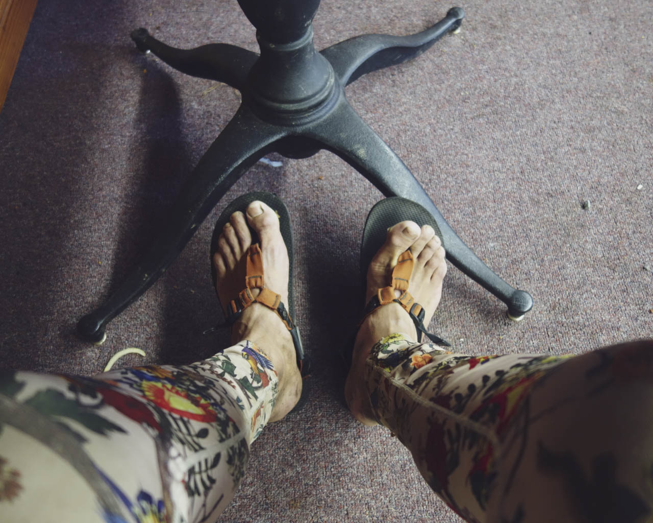 泥と汗でクタクタになったシューズとソックスを剥ぎ取り、サンダルを履いて足を乾かす。