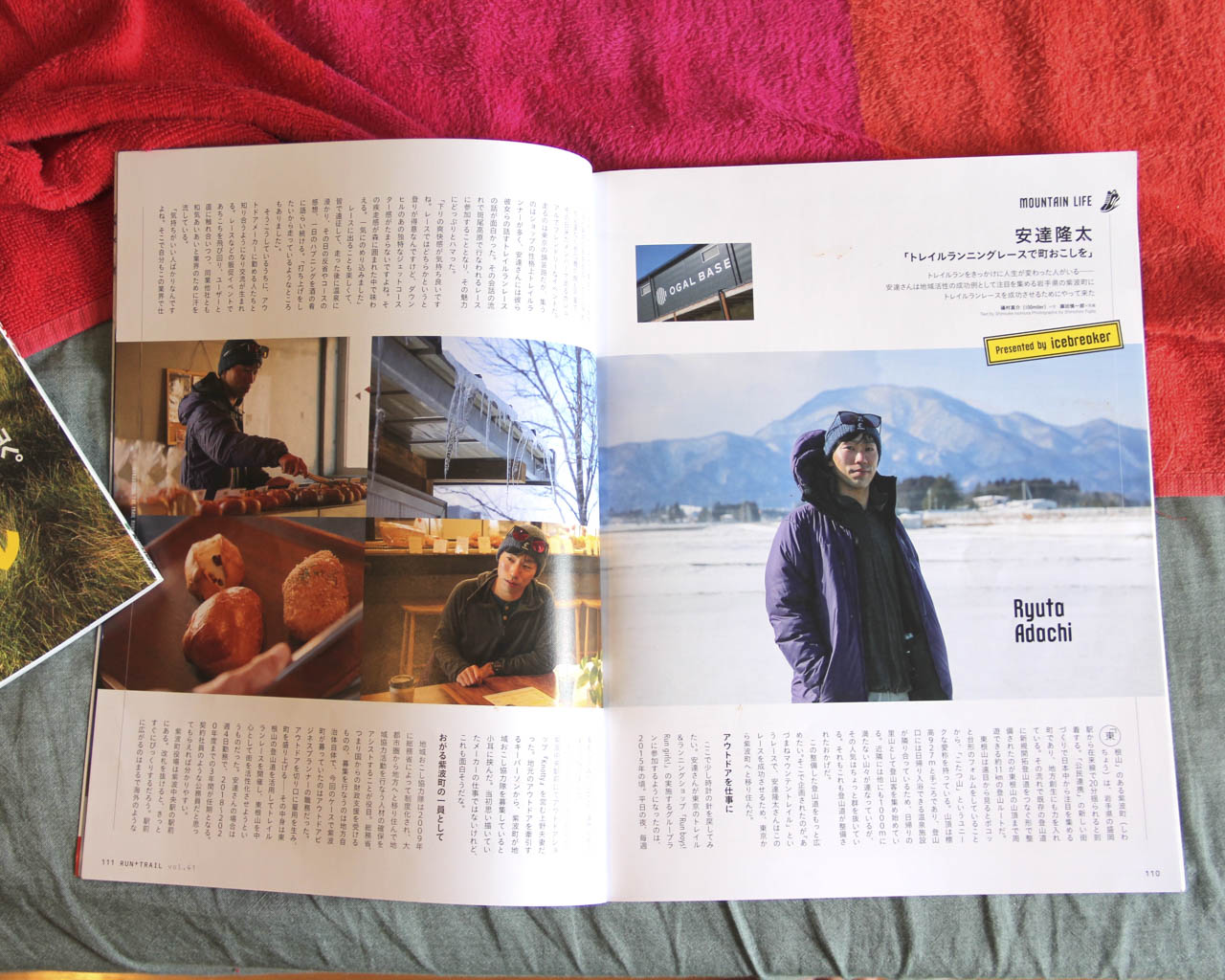 雑誌RUN+TRAILに掲載された、地域おこし協力隊としてトレランを通じて町おこしに取り組むあだっちゃん。