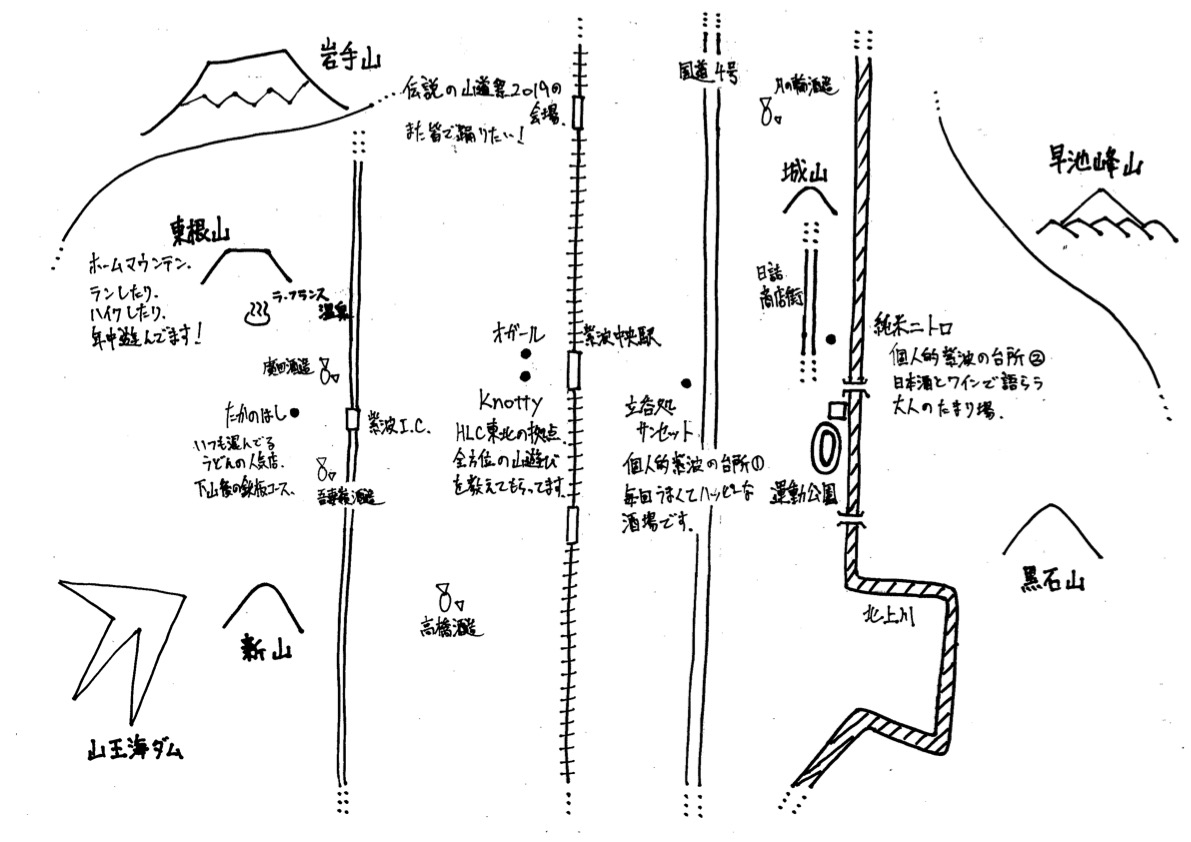 あだっちゃん手書きの紫波ローカルガイドマップ(スマートフォンで表示が小さい場合はピンチアウトで拡大してください)