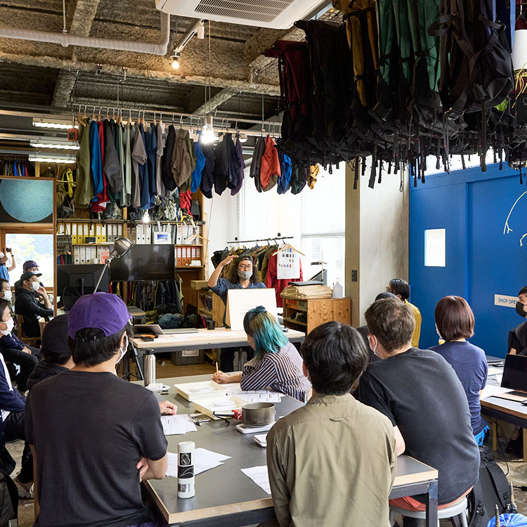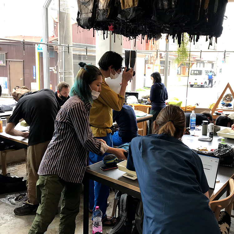 山と道の考えるULハイキングの魅力や内容を知り、ULハイキングの実践に繋げていくことを座学形式で学んでゆくプログラム。持参した道具を元にギアリストを作っていかに自分が重いのか、軽いのか、理解し、取捨選択の方法を学んでゆくのだ。子泣き爺、覚悟しろよ〜!