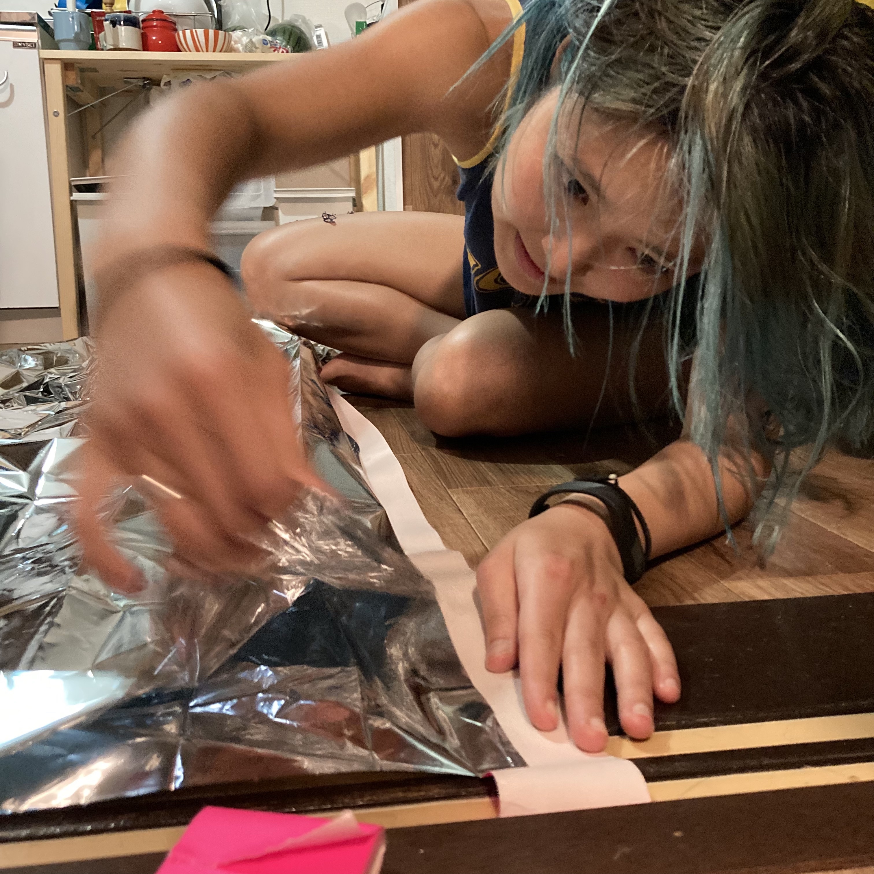 ビビィをMYOGする様子。ピンクのダクトテープで少し可愛くしたつもり
