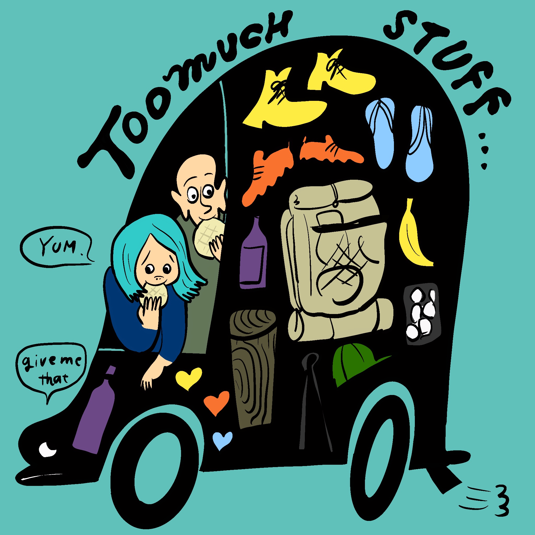 キャンプ場まではクルマで行くことにした。これが失敗だったと今は後悔している。どんなに小さいクルマだってある程度の積載量がある。この積載量に私は甘えてしまった。「テントはすぐ使うしザックに入ってなくてもいっか! クルマに乗るし!」「靴はどうしよう? とりあえず思いつくものは持っていっとくか!(3足トランクへボーン!)」といった具合に実際に自分で持つと考えるととても重くて持てない重量になってしまった。どうしたら軽くなるかあんなに考えてパッキングしたのに台無しじゃないか。しかしこれが甘えだということに気づいたときには私たちは東名高速のど真ん中。もう遅いのだ。