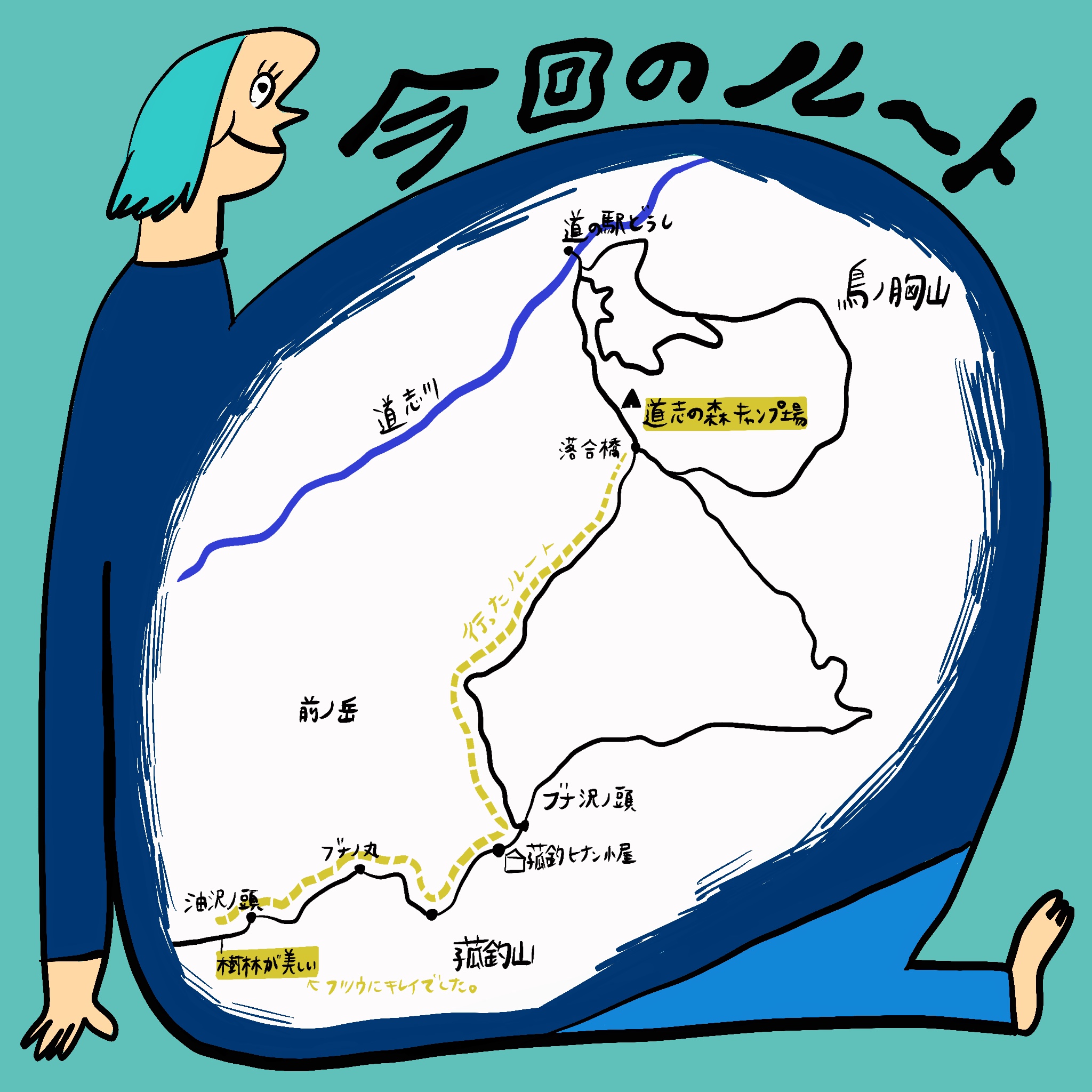 道志の森キャンプ場から直結している登山口から木々と水に囲まれた豊かな森に入る。緩やかな傾斜で歩きやすい。開始20分くらいでカモシカと出会った。お尻が大きく重心が低いカモシカの走りは少し不細工でかわいい。菰釣山の発音の難しさについて彼と話しながら歩く。