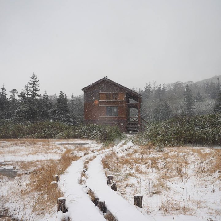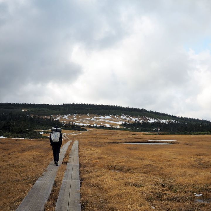 Hikers Express(友人夫婦のクルマ)で東京から片道700 kmをブッ飛ばし、八幡平に到着。どこまでも広がっていくような湿原に感激し、夜は幸運にも薪ストーブ付きの避難小屋を貸切り状態で過ごすことができた。これがまたお酒を飲むのに最高なシチュエーションで、隠し持ってきた自慢の酒とツマミを小出しに見せ合いながら、早い時間から絶好調(笑)。