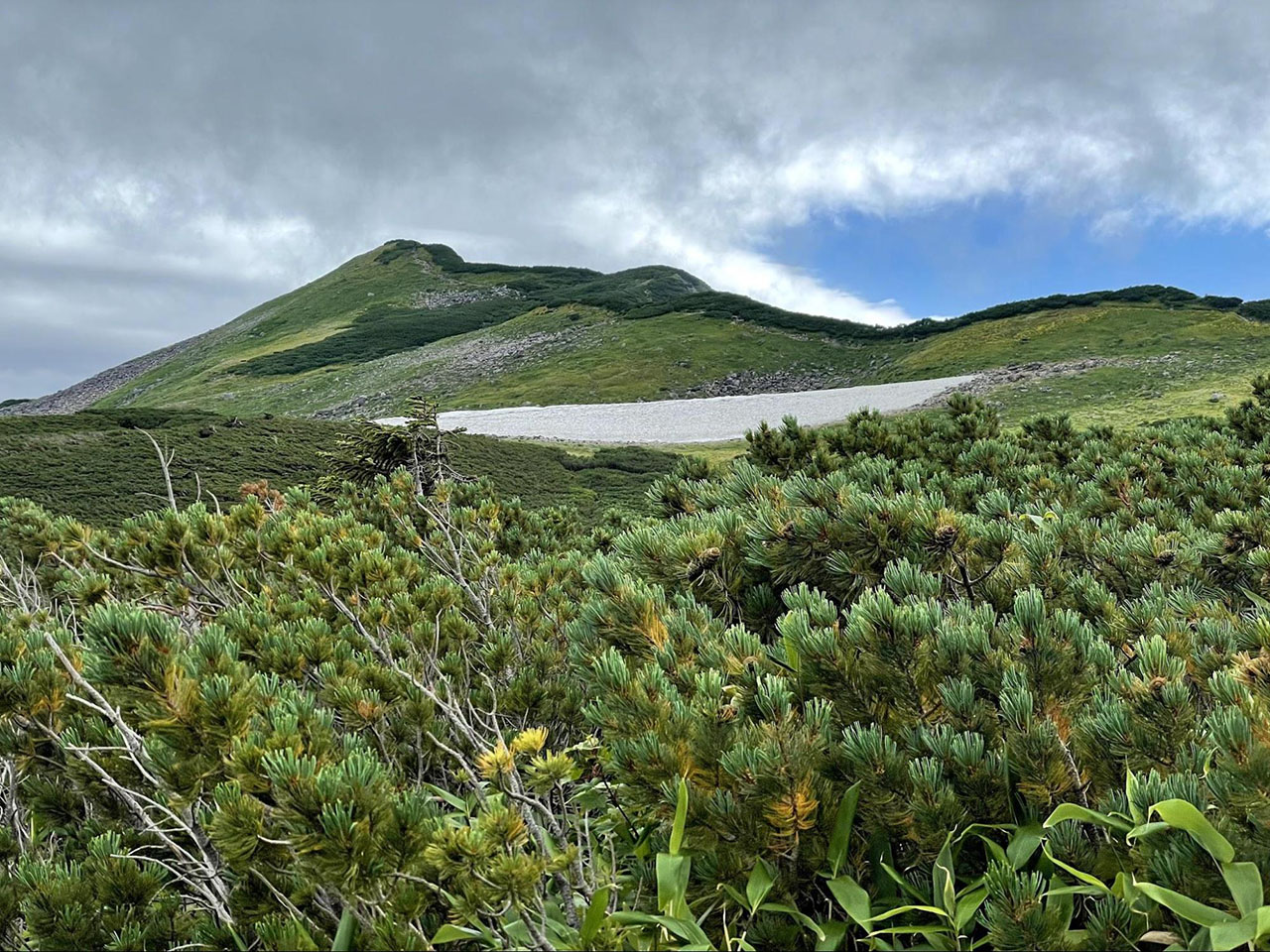 五色ヶ原。空が急速に灰色の雲で覆われる