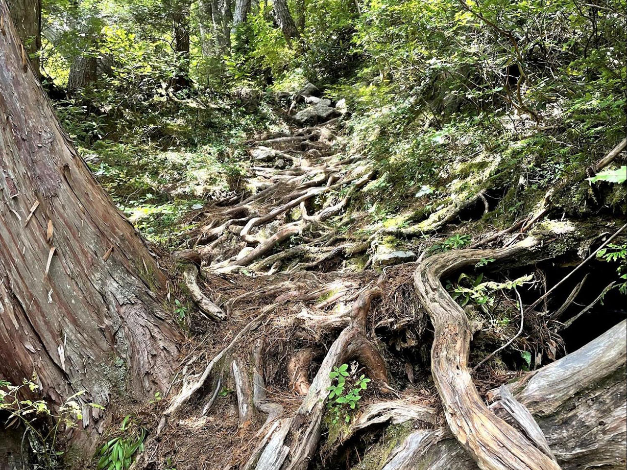この旅の途中から沸いてきたイメージがあった。昔は一般道も登山道もなく、すべて未舗装路だったはずだ。登山道というのは現代人から見た感覚であって、昔は平地の道も山中の道も区別はなかった。土屋さんが「自然歩道や未舗装林道、舗装路までをもひっくるめて全て道」と言ったのは、全部がつながっているからルート設計に利用できるという意味だけではなく、文字通り全く同じものということだったのではないか…。