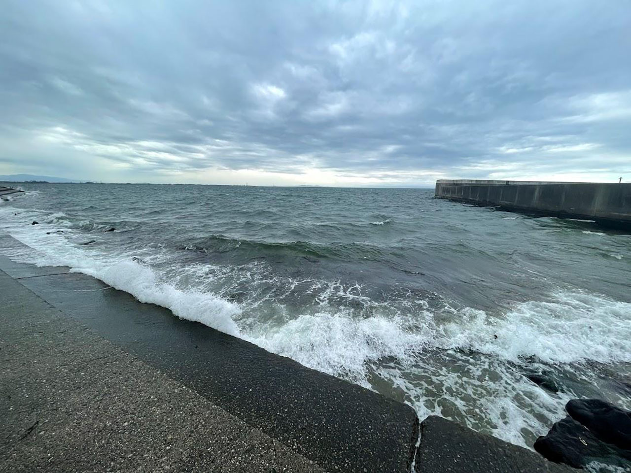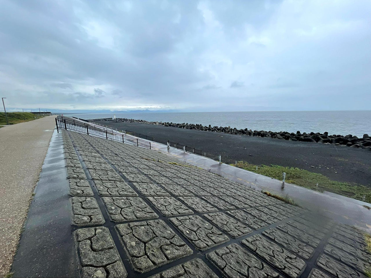 スタート時に期待していたのは晴れ渡ったスカイブルーの太平洋だったけれど、富山湾と同じくゴールの海も灰色だった。